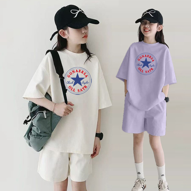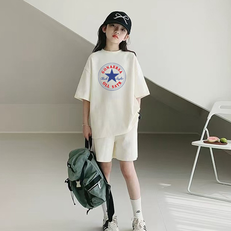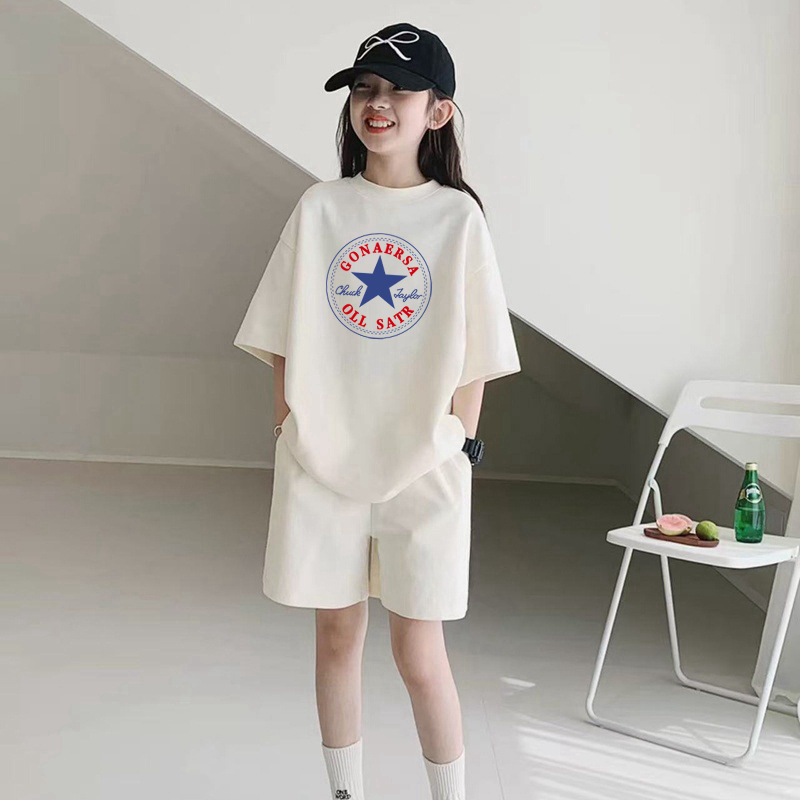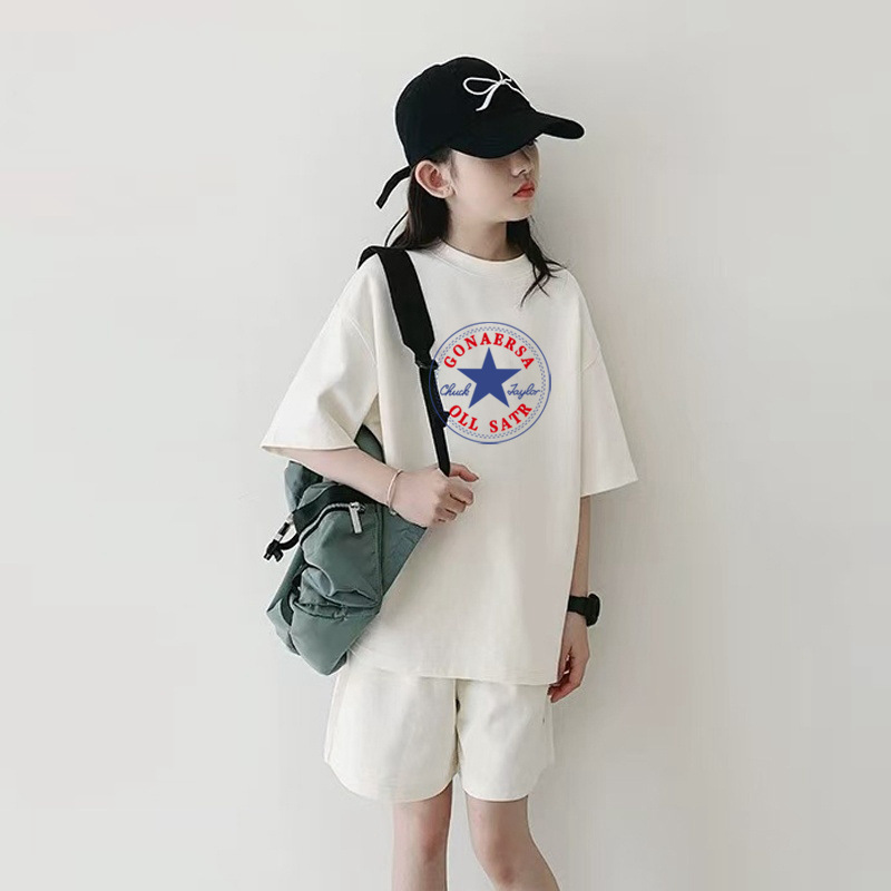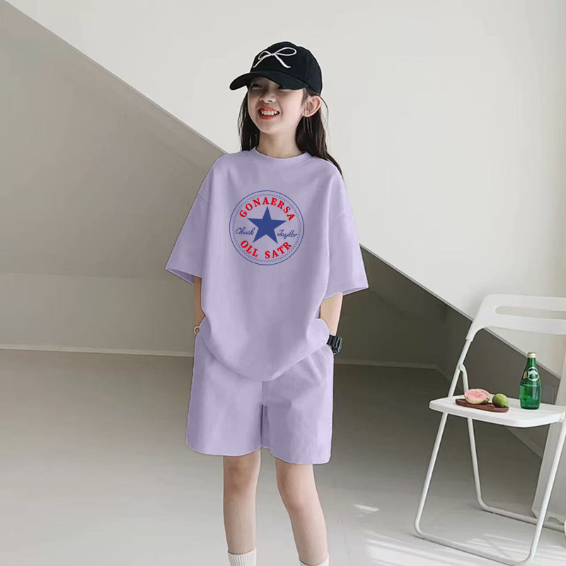 반팔 티셔츠 소년 소녀, 트렌디 한 세트 스포츠 스타일 캐주얼 여름 반바지 홍콩 스타일 2025 새로운 투피스 세트스토어 가기