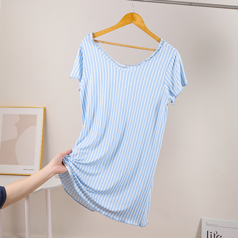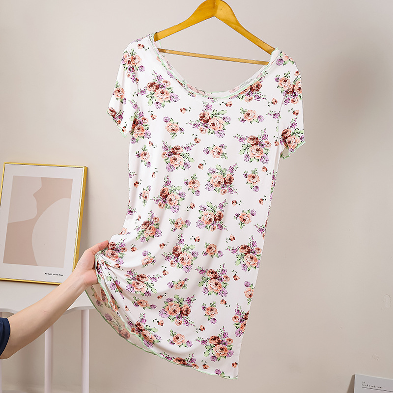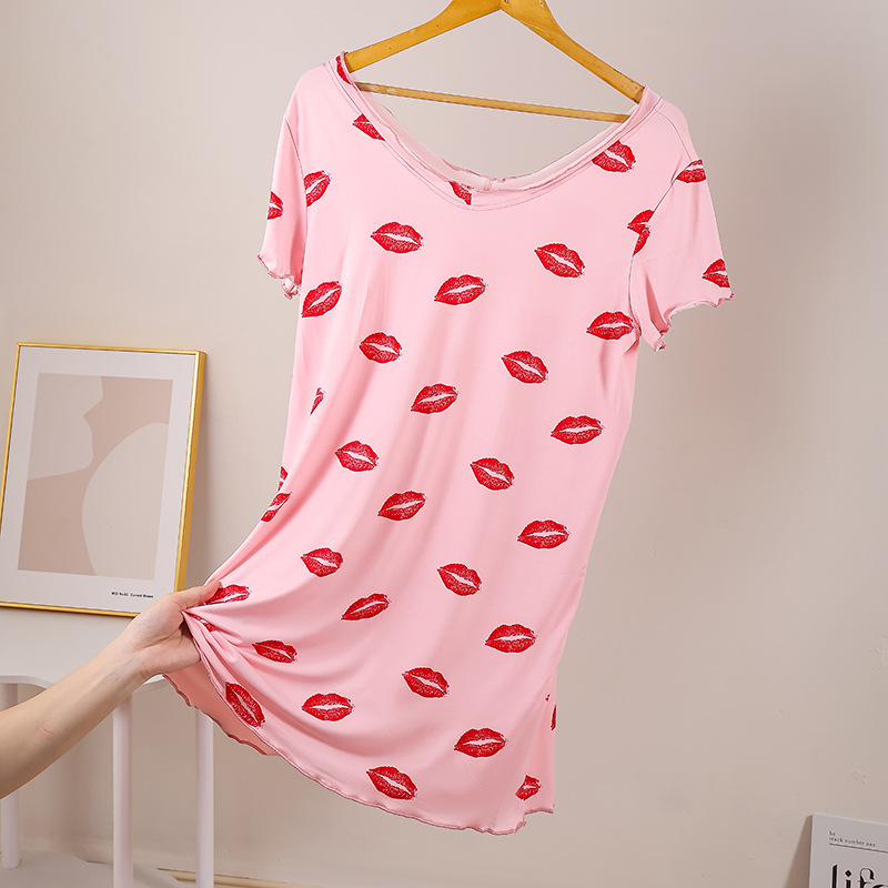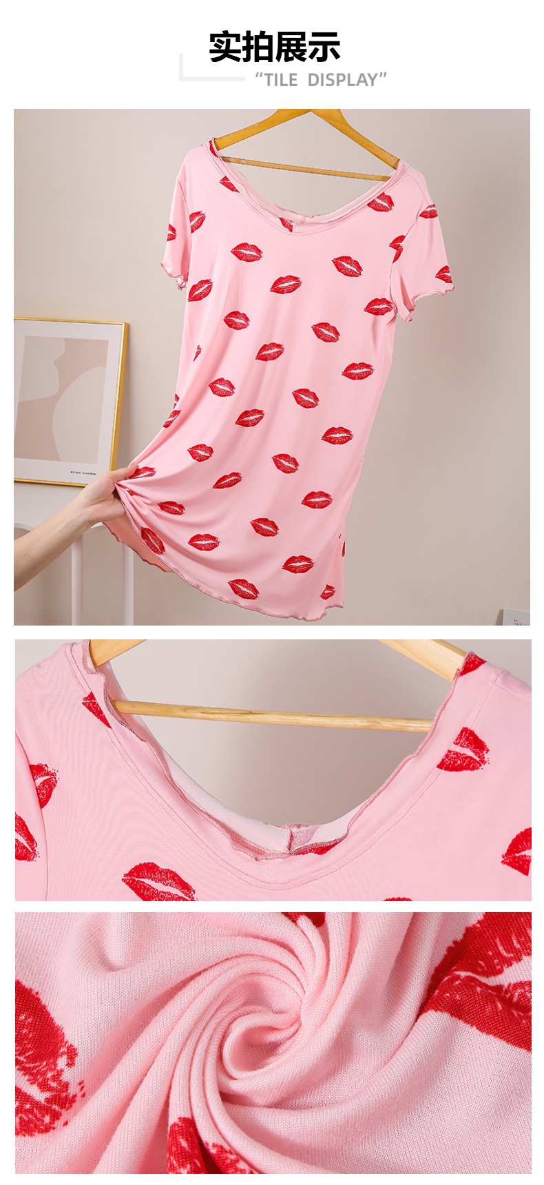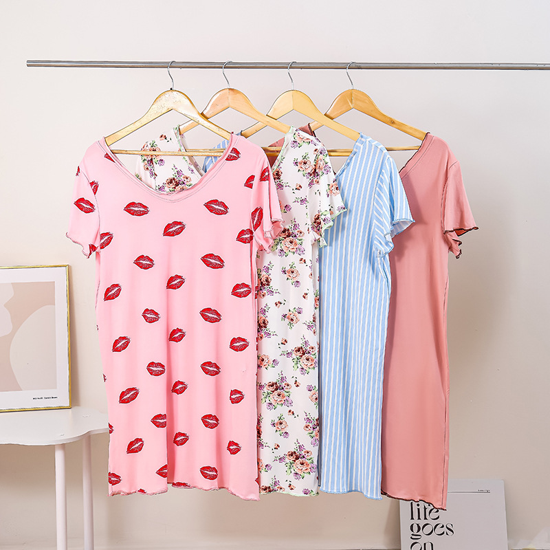 여름 여성용 크로스보더 대외 무역 테무 반팔 드레이프 잠옷, V넥 얇은 드레스, 캐주얼 홈웨어, 야외에서 착용 가능