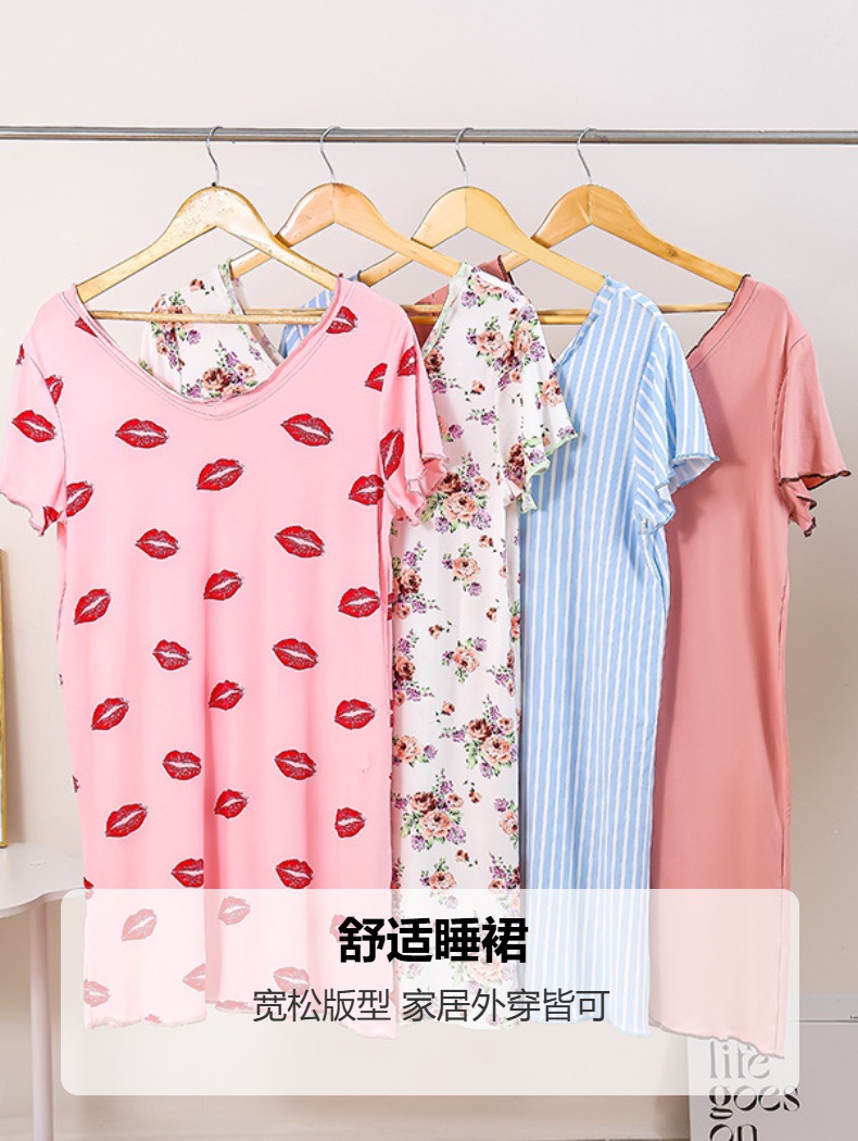 여름 여성용 크로스보더 대외 무역 테무 반팔 드레이프 잠옷, V넥 얇은 드레스, 캐주얼 홈웨어, 야외에서 착용 가능스토어 가기