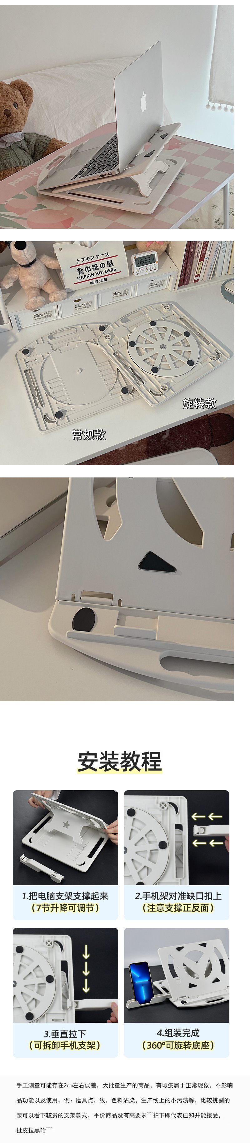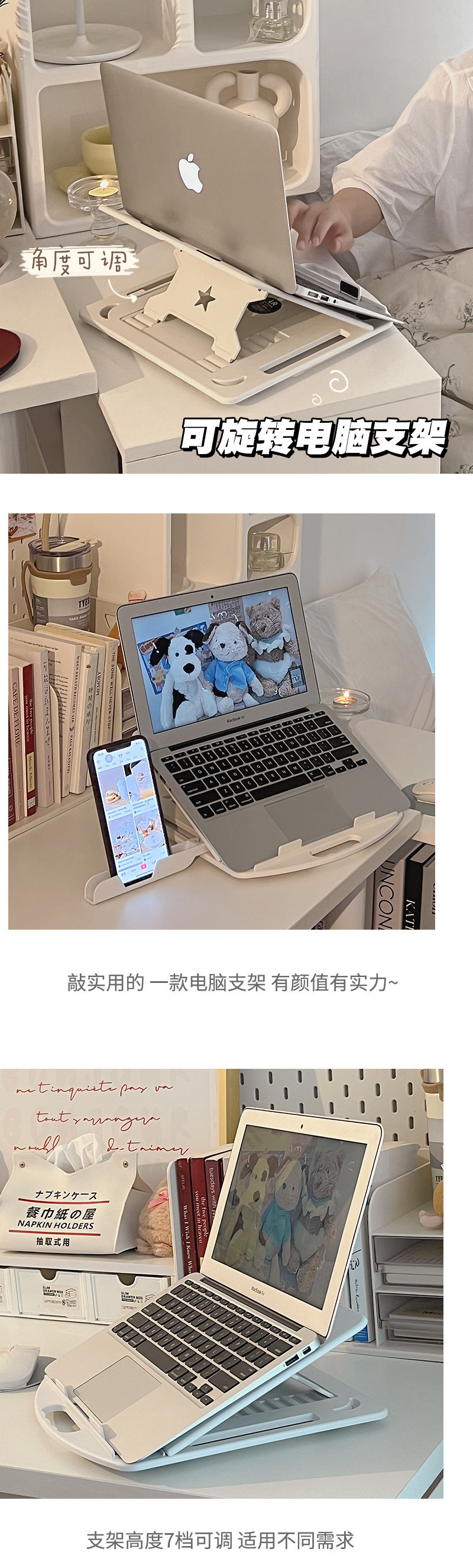 노트북 스탠드 냉각 데스크탑 360 ° 회전 브래킷 높이 조절 랙 접이식 리프팅 휴대 가능