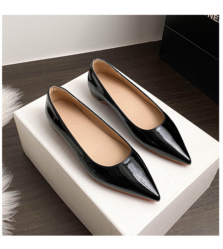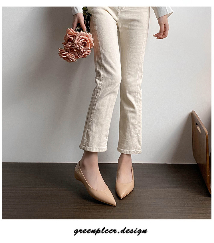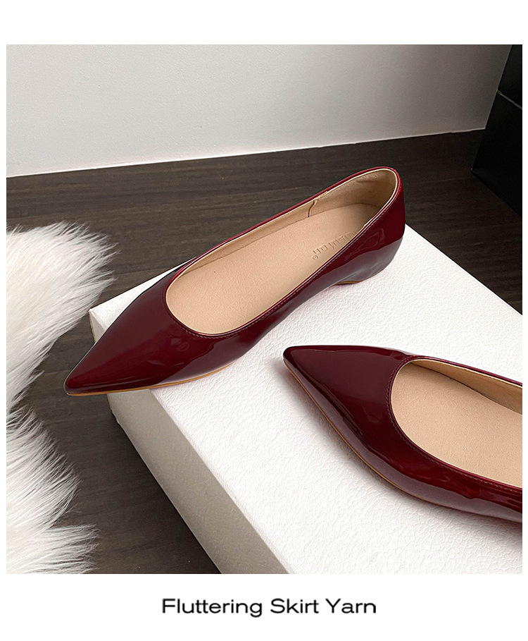 2025 봄과 가을 새로운 스타일 프렌치 누드 컬러 내부 강화 빨간색 바닥 뾰족한 플랫 슈즈 여성용 얕은 입 통근 작업 신발