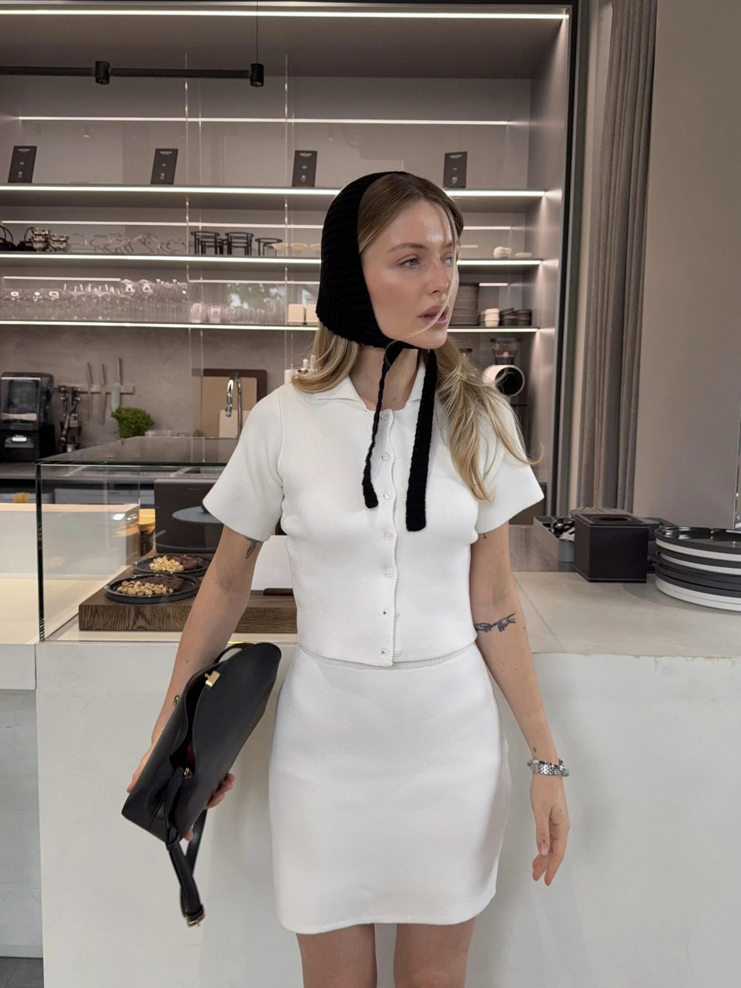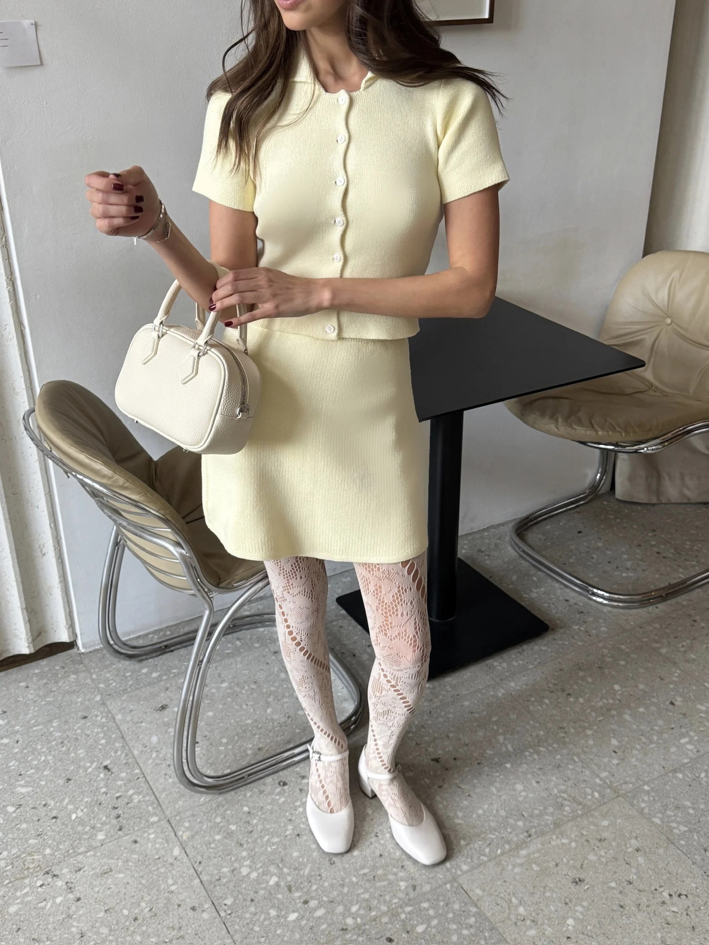 유럽과 미국의 핫걸들을 위한 니트 스웨터, 섬세하고 부드러운 레트로한 컬리지 스타일 니트 가디건, 여성용 단색 패션 세트 스커트