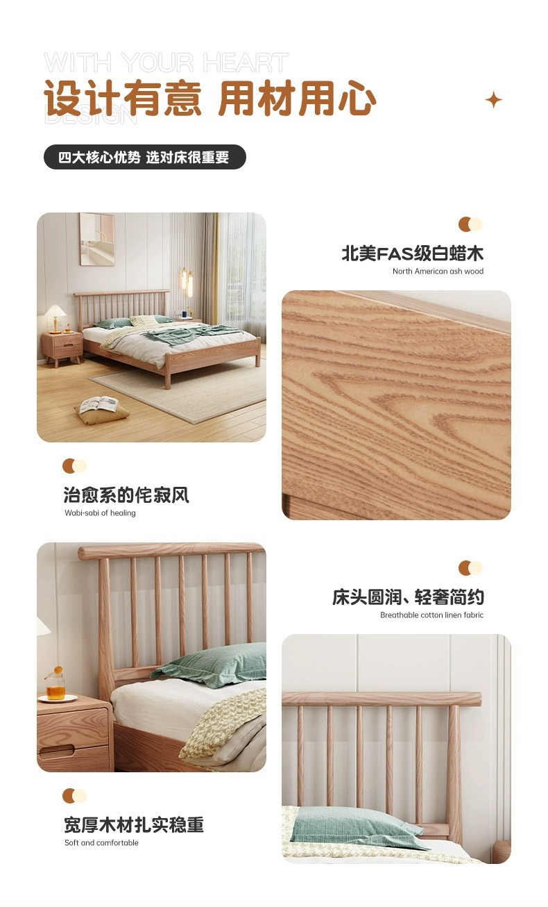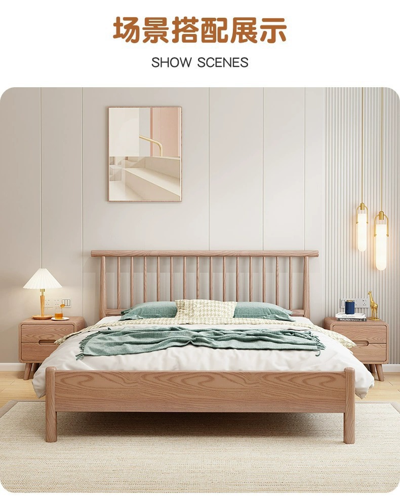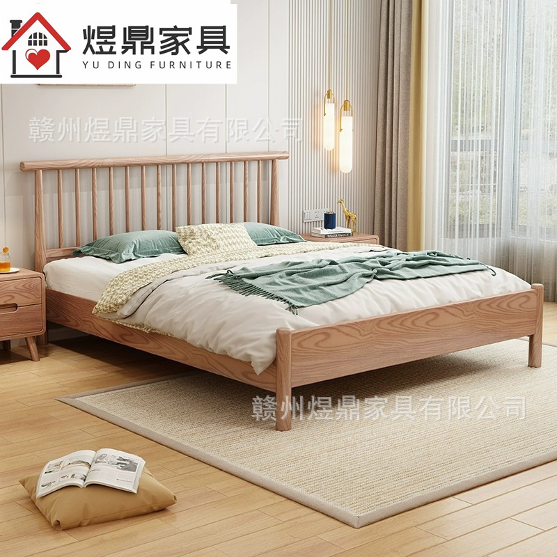 아스파라거스 원목 침대 현대적인 미니멀리스트 더블 마스터 침실 라이트 럭셔리 북유럽 작은 아파트 1.5m 싱글 B&B 침대 프레임스토어 가기