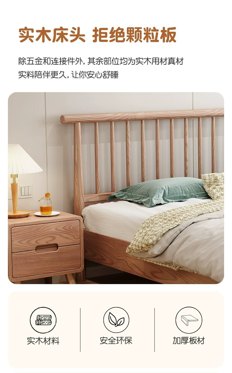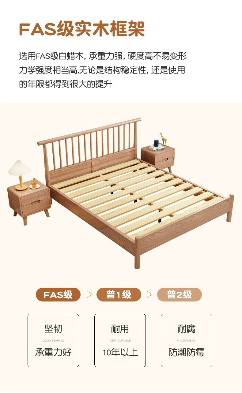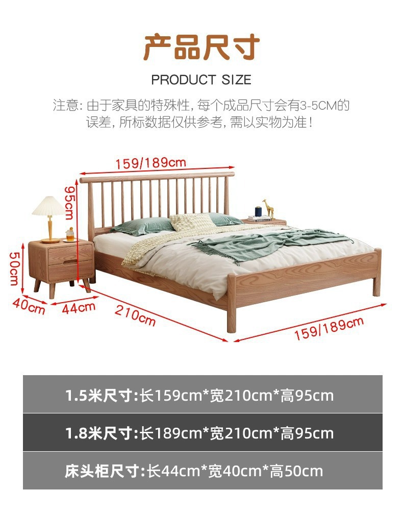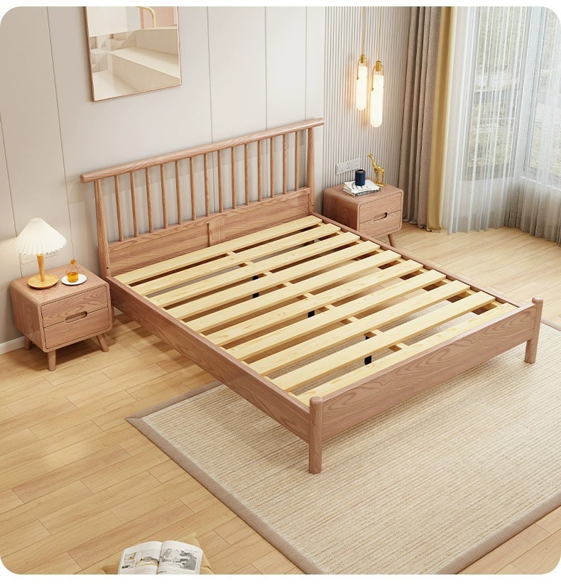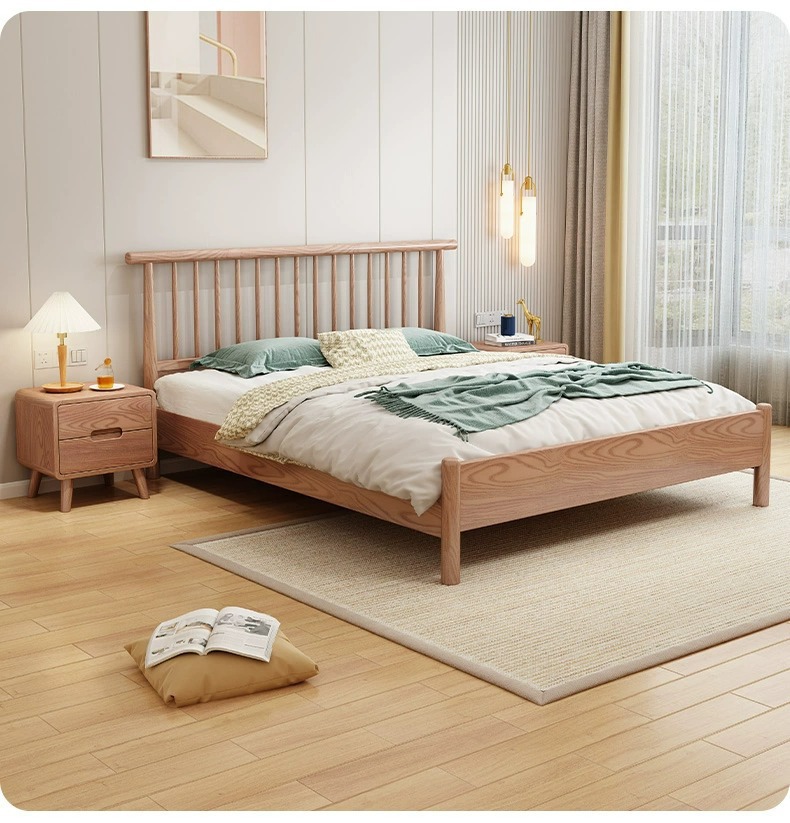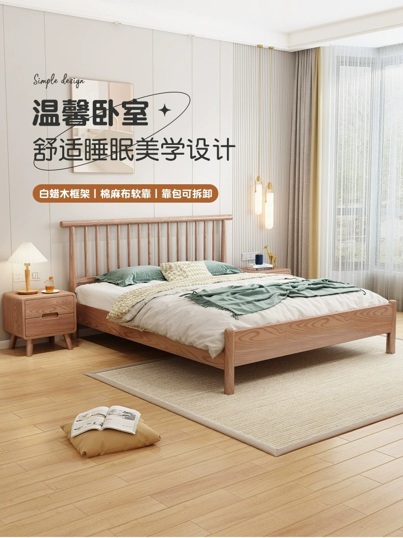 아스파라거스 원목 침대 현대적인 미니멀리스트 더블 마스터 침실 라이트 럭셔리 북유럽 작은 아파트 1.5m 싱글 B&B 침대 프레임