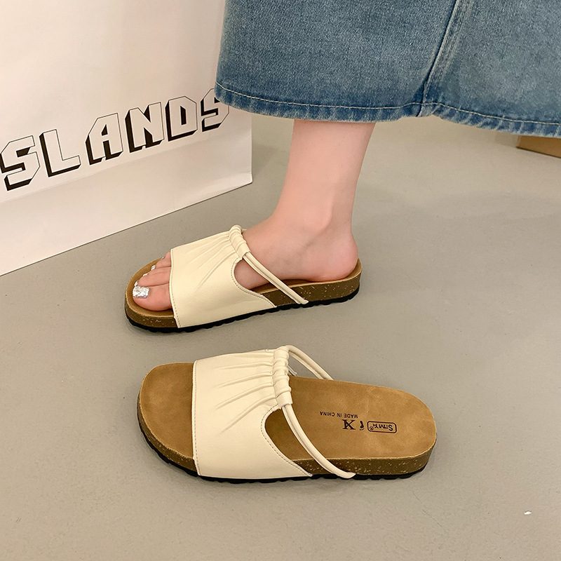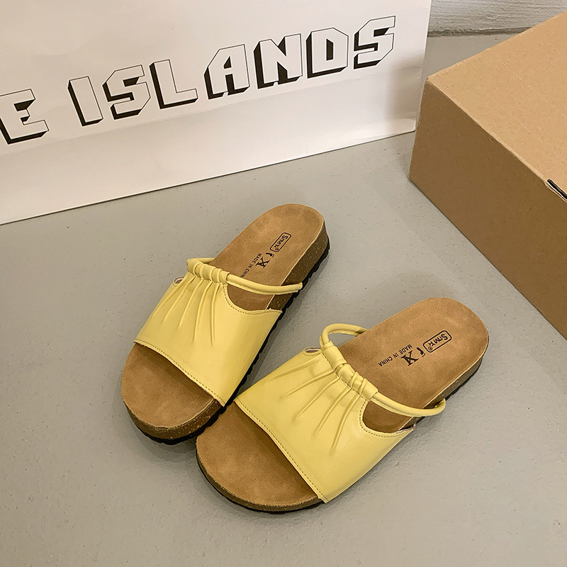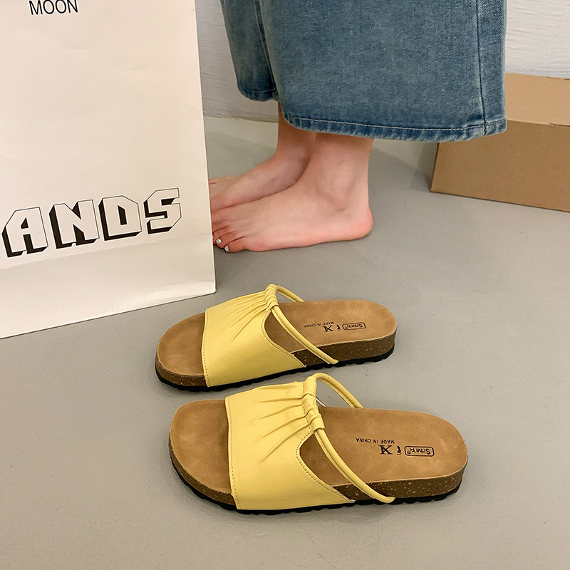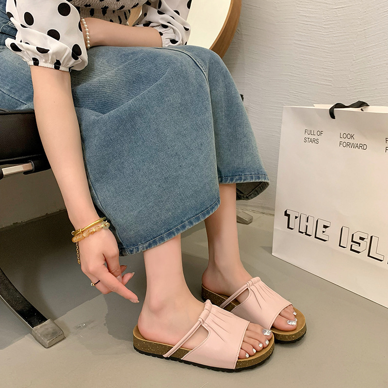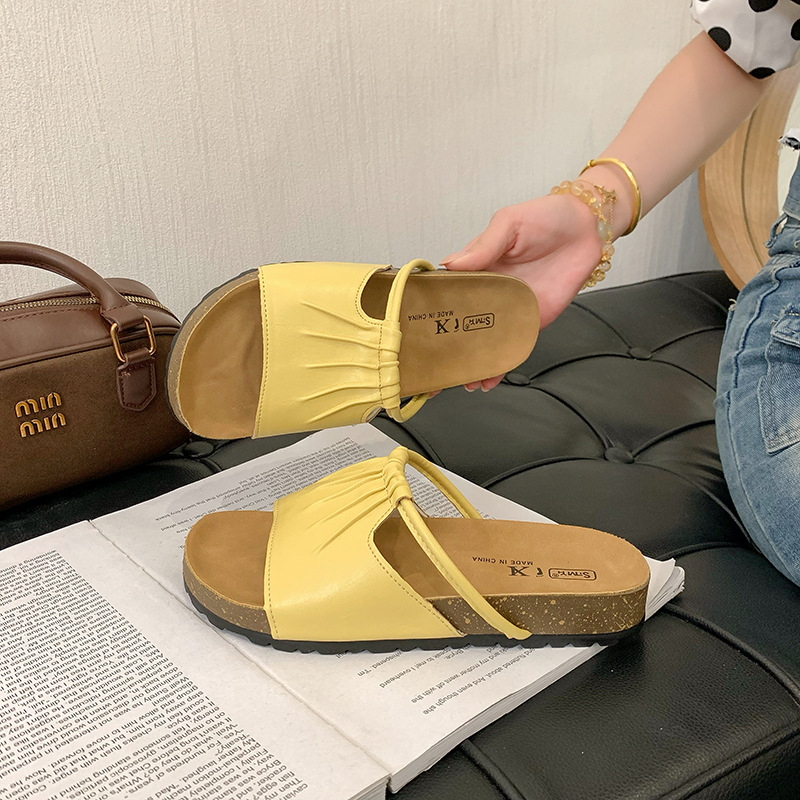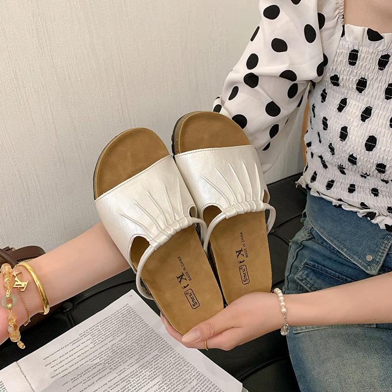 Cowhide Edition ~ 새로운 패션 올매치 두꺼운 바닥 높이 슬리퍼 여성 외부 착용 캐주얼 샌들 및 슬리퍼 여성 여름 한국 스타일스토어 가기