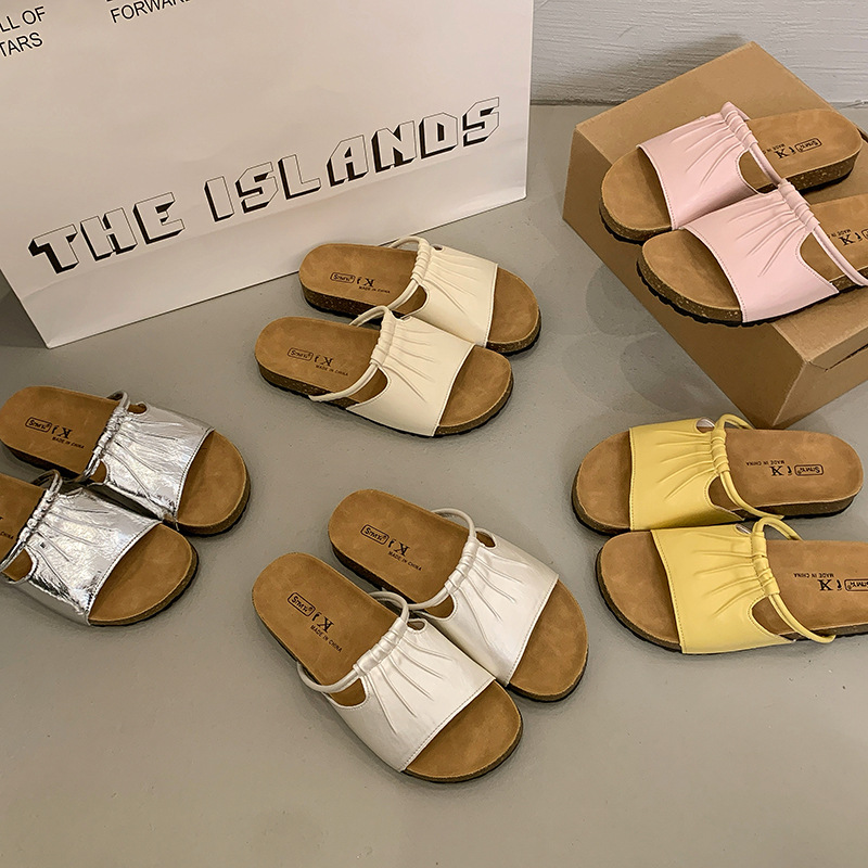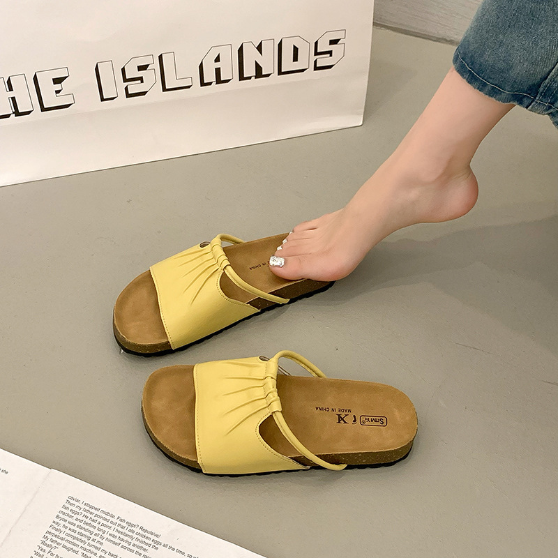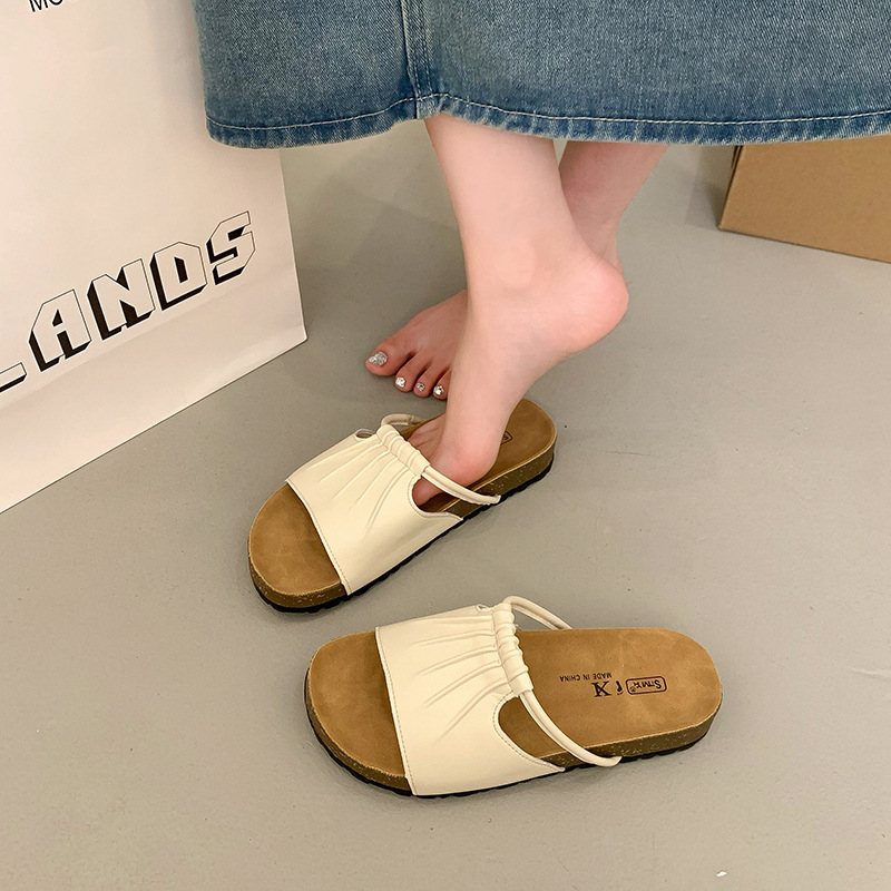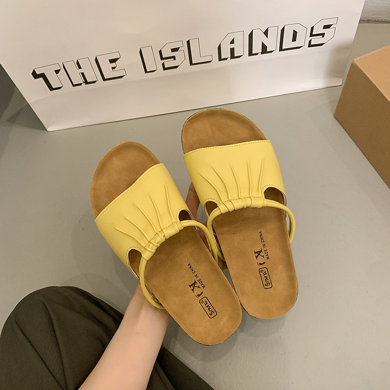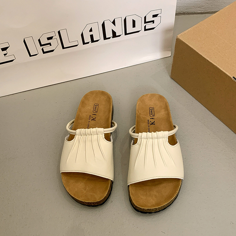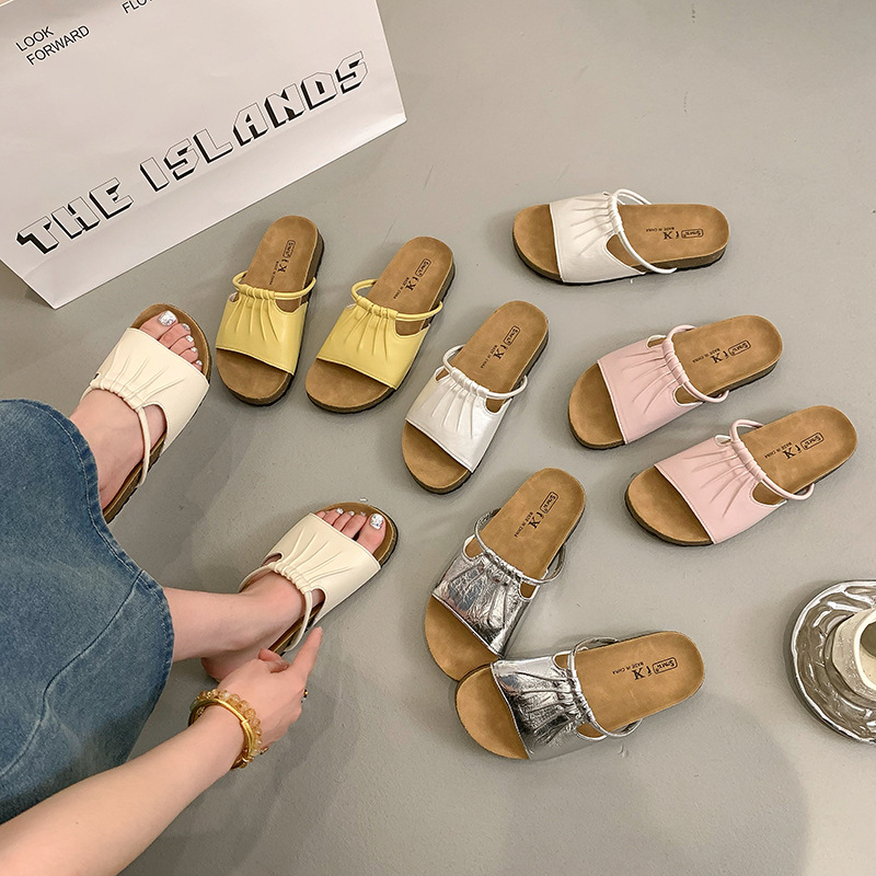 Cowhide Edition ~ 새로운 패션 올매치 두꺼운 바닥 높이 슬리퍼 여성 외부 착용 캐주얼 샌들 및 슬리퍼 여성 여름 한국 스타일스토어 가기