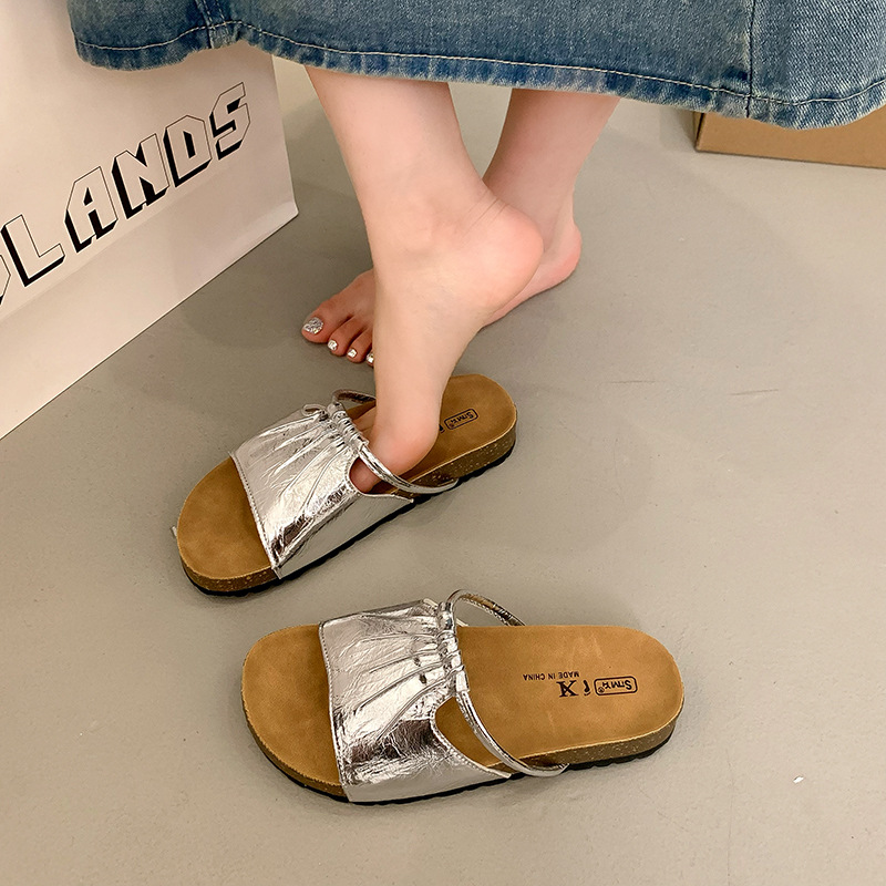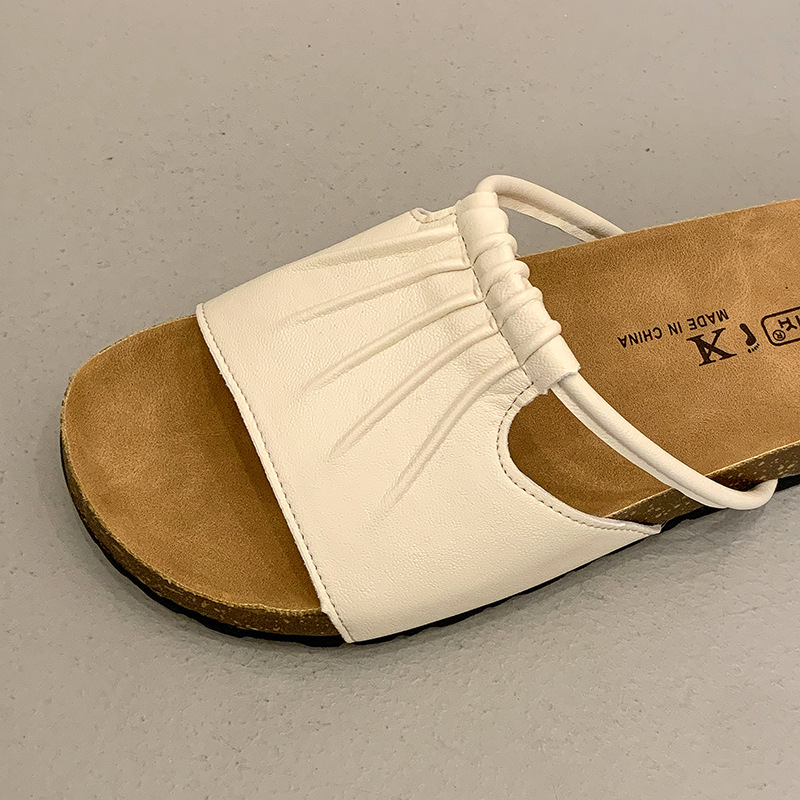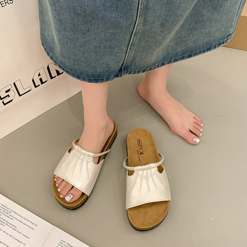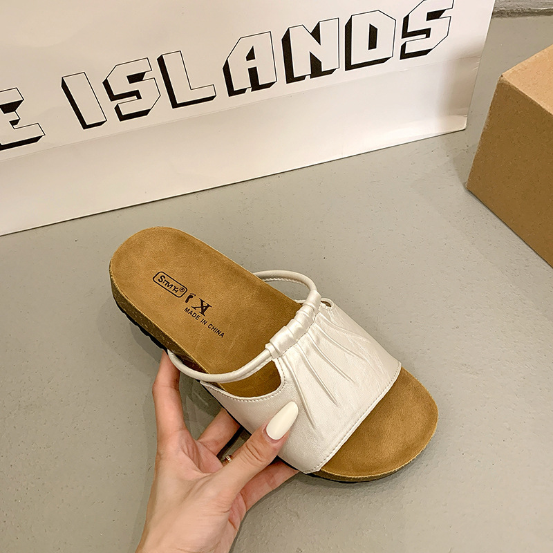 Cowhide Edition ~ 새로운 패션 올매치 두꺼운 바닥 높이 슬리퍼 여성 외부 착용 캐주얼 샌들 및 슬리퍼 여성 여름 한국 스타일