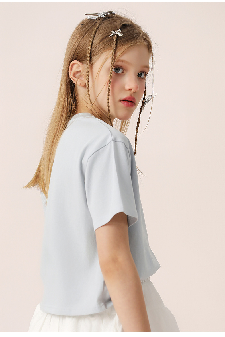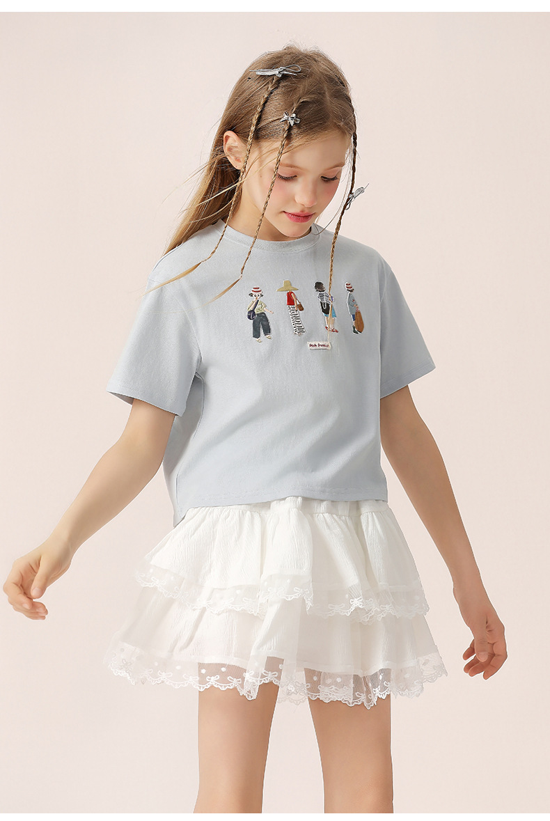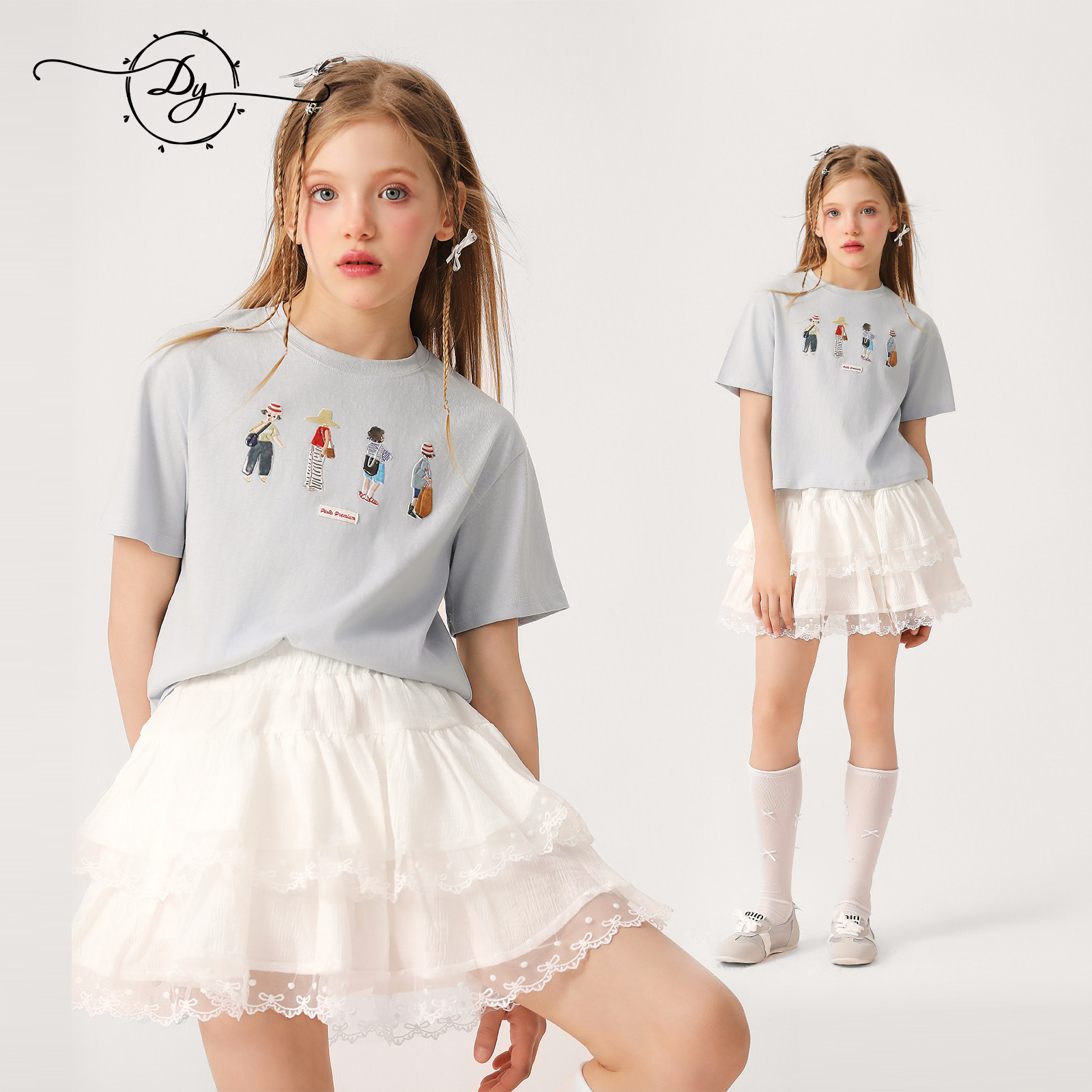 소녀 입체 만화 자수 티셔츠 2025 여름 새로운 반팔 중형 및 대형 어린이 통기성 서양식 학생 재킷 얇은스토어 가기