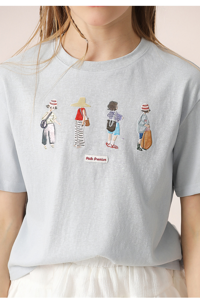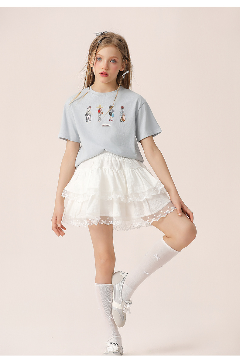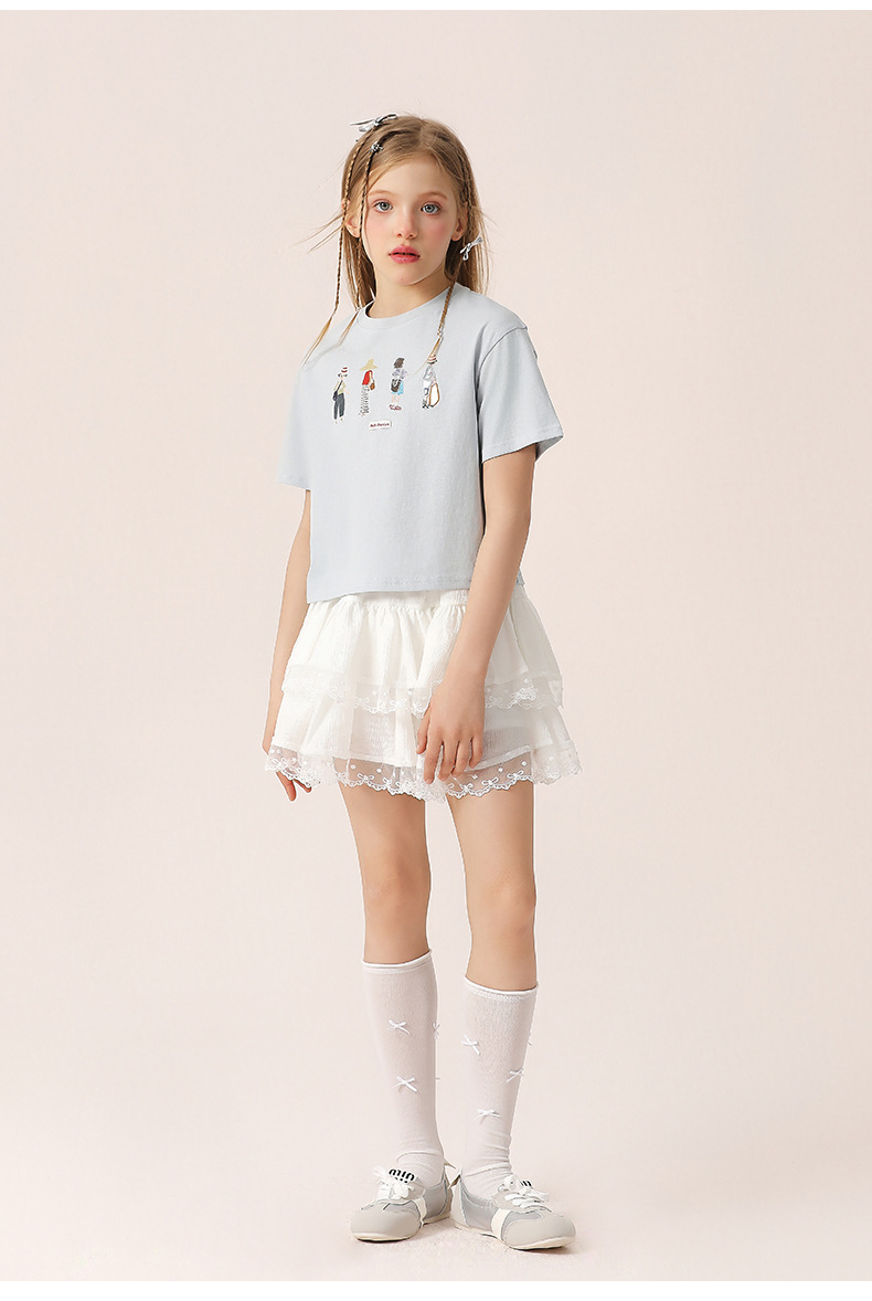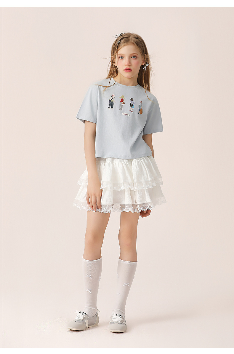 소녀 입체 만화 자수 티셔츠 2025 여름 새로운 반팔 중형 및 대형 어린이 통기성 서양식 학생 재킷 얇은스토어 가기