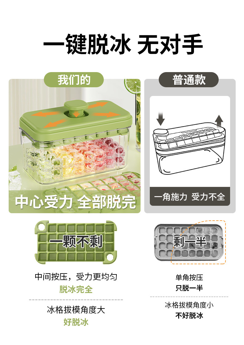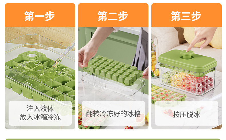 얼음 트레이 아이스 큐브 금형 가정용 제빙기 냉장고 얼음 저장 상자 대용량 식품 등급 냉동 아이스 큐브 아이스 삽 대외 무역스토어 가기