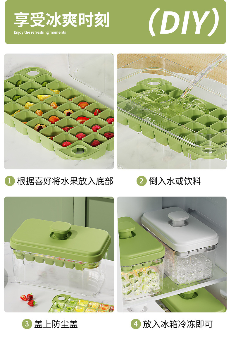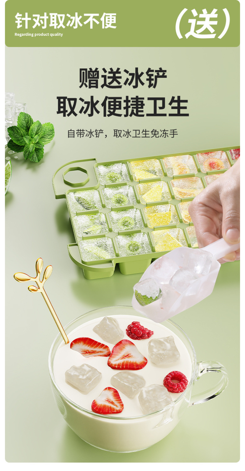 얼음 트레이 아이스 큐브 금형 가정용 제빙기 냉장고 얼음 저장 상자 대용량 식품 등급 냉동 아이스 큐브 아이스 삽 대외 무역