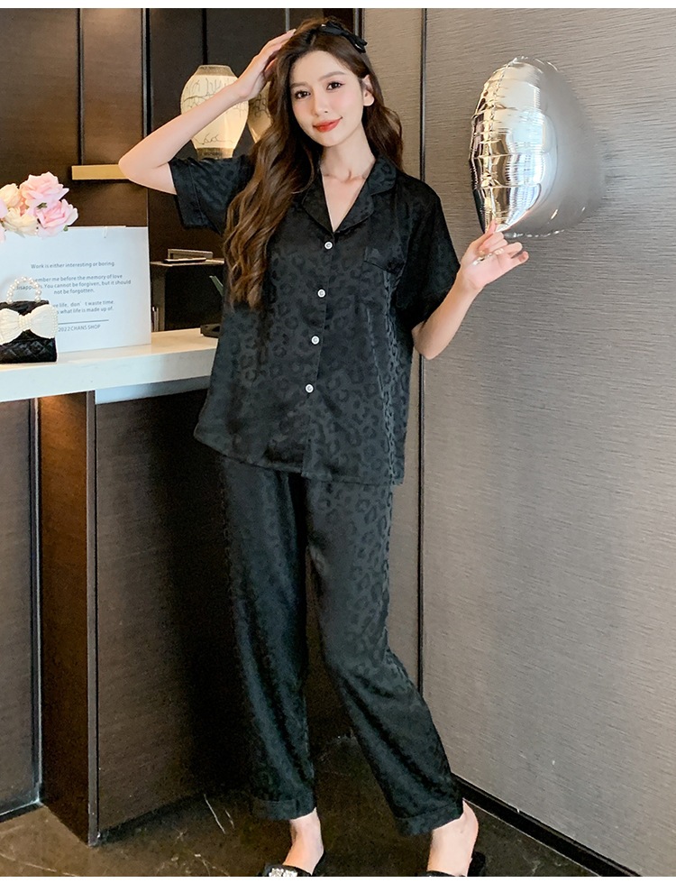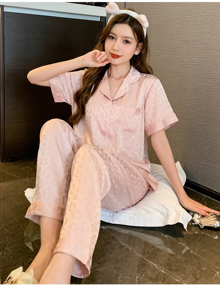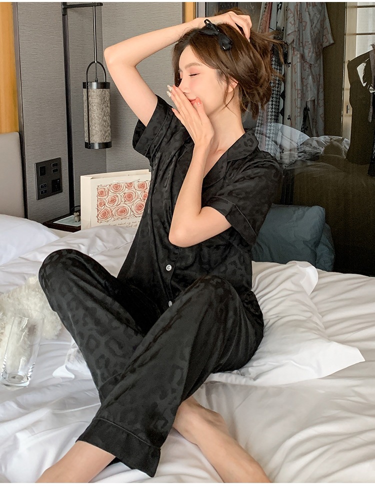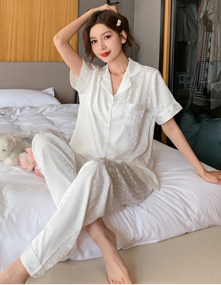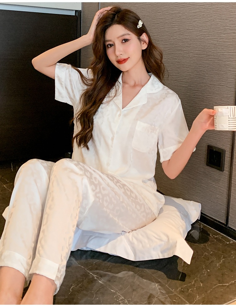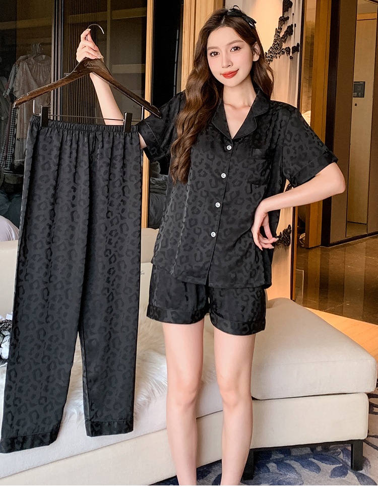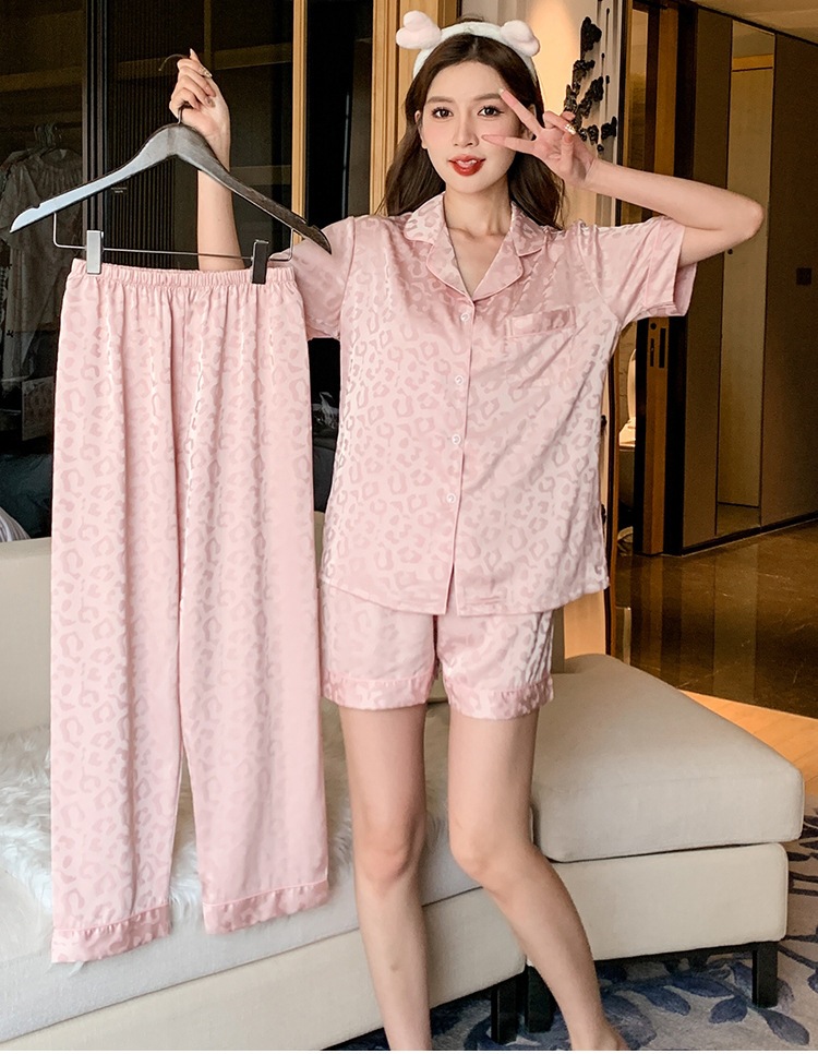 2025년 신상 여성용 잠옷, 아이스 실크 반팔 바지 3피스 세트, 고급스럽고 가벼운 럭셔리 홈웨어 세트, 야외에서 착용 가능스토어 가기