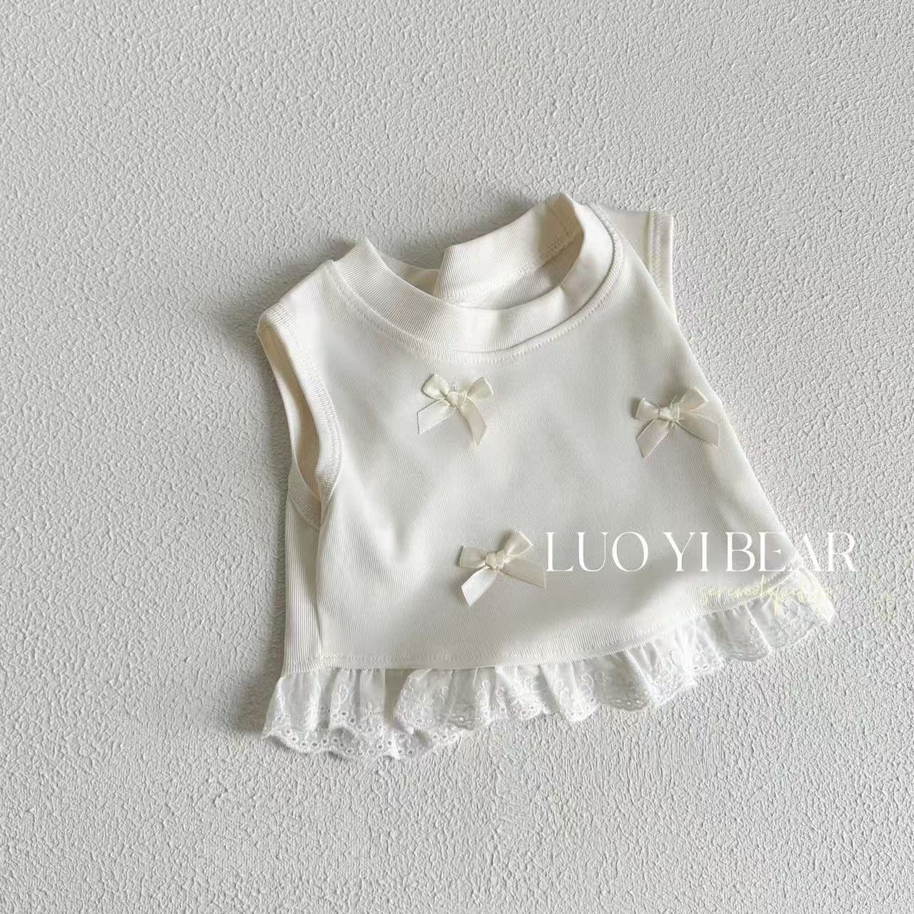 여아 신작 아동복 나비넥타이 조끼 민소매 여름 옷 새로운 스타일 아동용 달콤한 스플라이스 민소매 티셔츠 탑