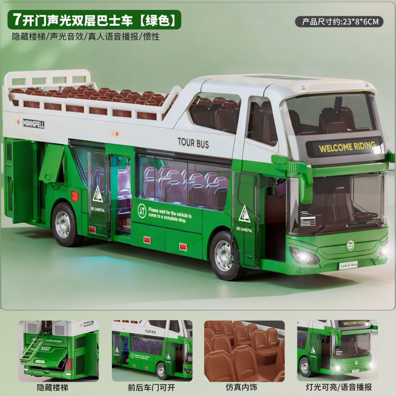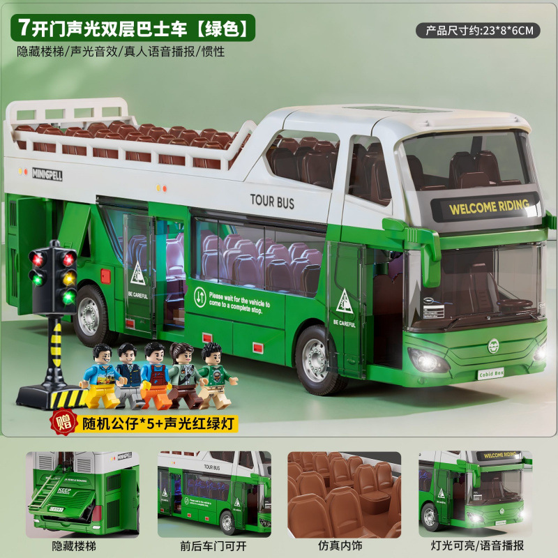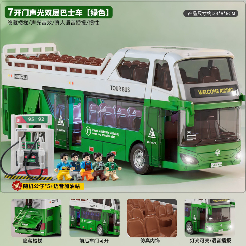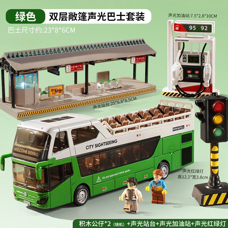 • 소리와 빛의 이층버스 - 에메랄드그린 - [업그레이드된 플랫폼 + 피규어 2개 + 신호등 + 주유소] 대형세트