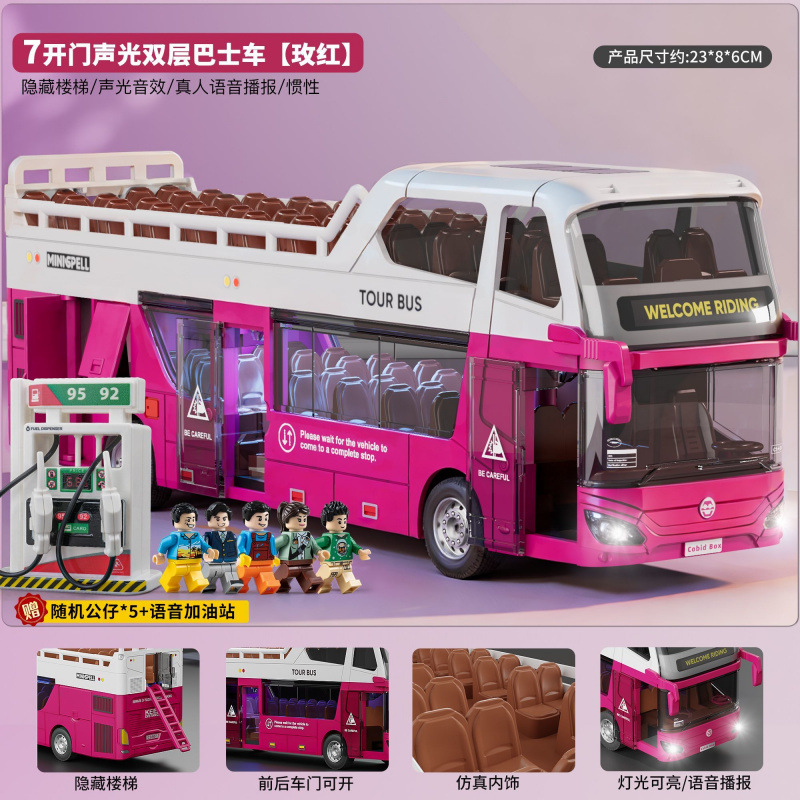 • 소리와 빛의 이층버스 - 밝은 빨간색 - [5*인형+주유소] - 소리와 빛의 이층버스