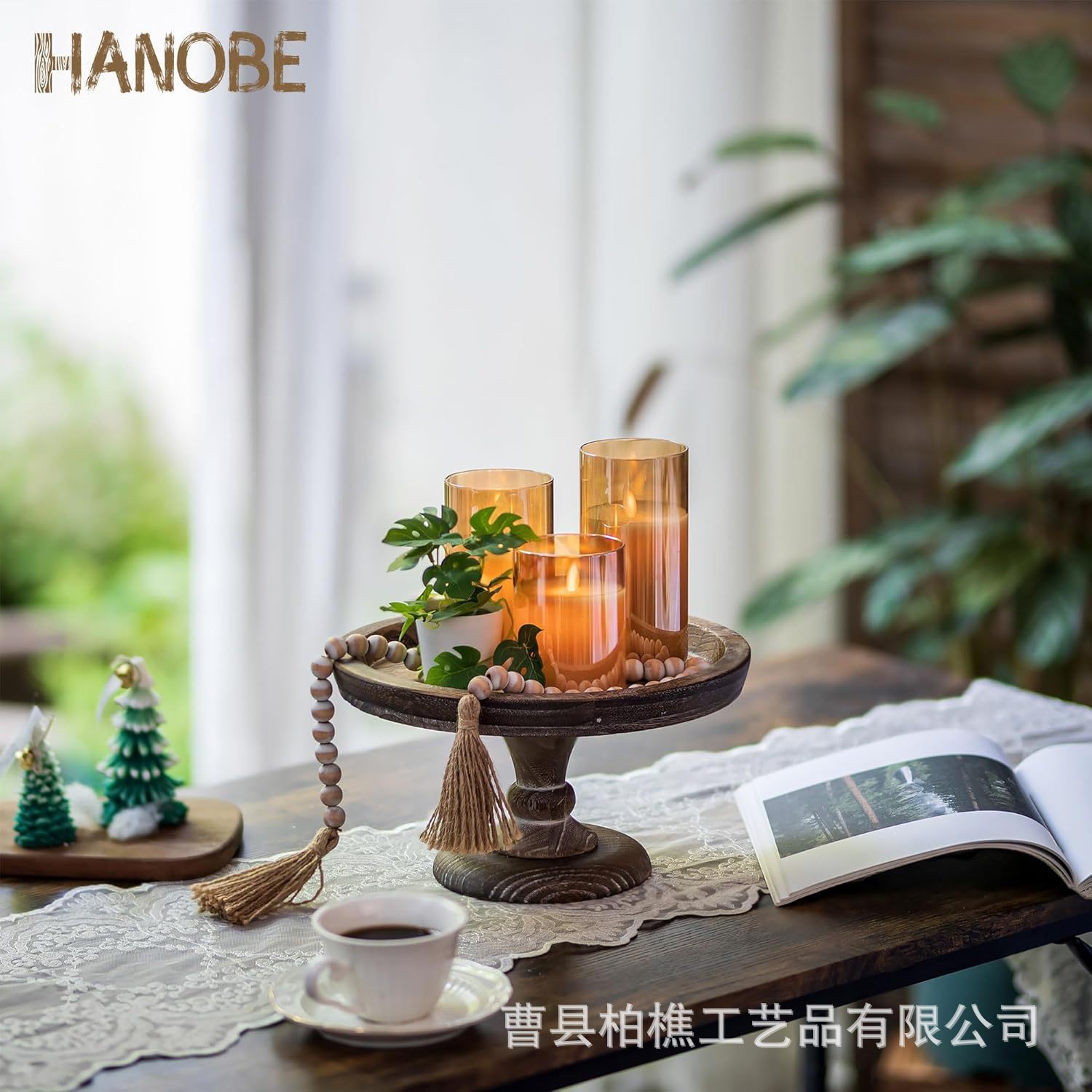 단단한 나무 높은 트레이 탁상 장식품 장식 트레이 커피 테이블 촛대 카운터 케이크 트레이 단단한 나무 과일 디저트 트레이