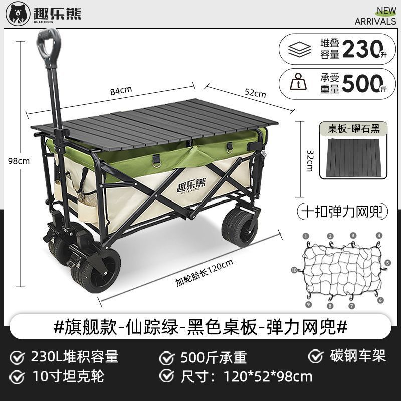 • [펀베어] 브랜드 직판 I 트레일러 캠핑카 - 위저드 그린 - 탱크바퀴 10inch개 + 버클 메쉬백 10개
