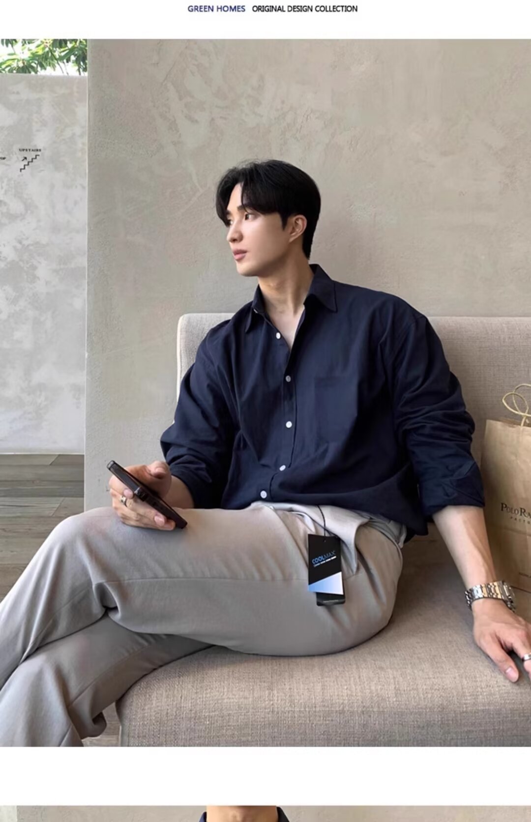 • 린넨 긴팔 셔츠 카키