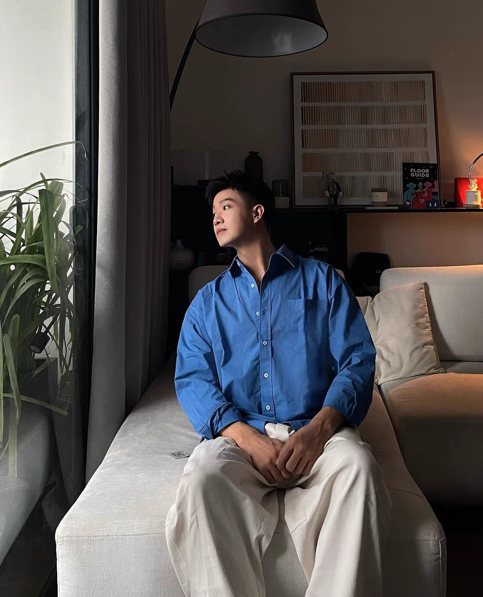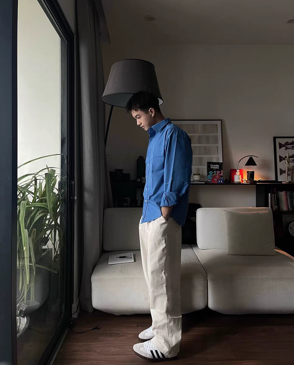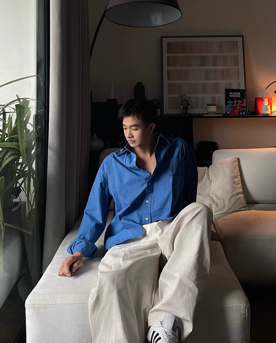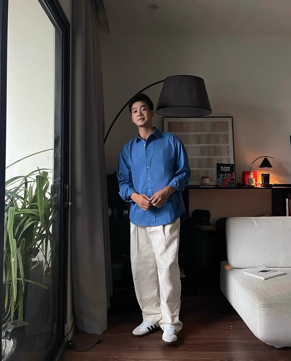 • 린넨 긴팔 셔츠 스카이블루