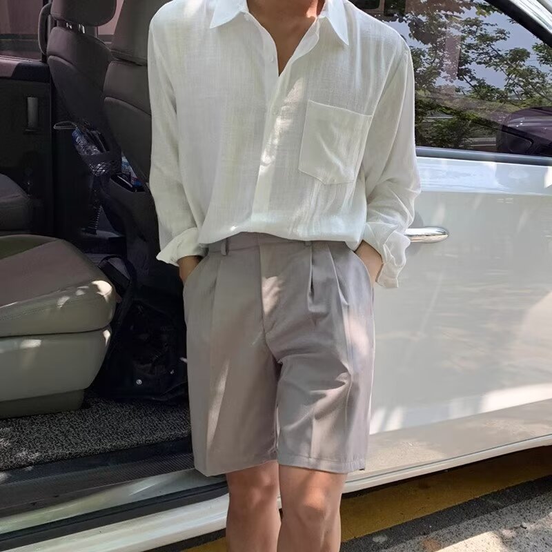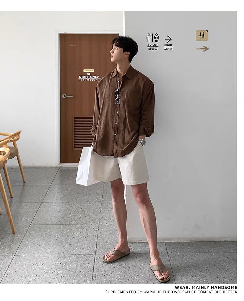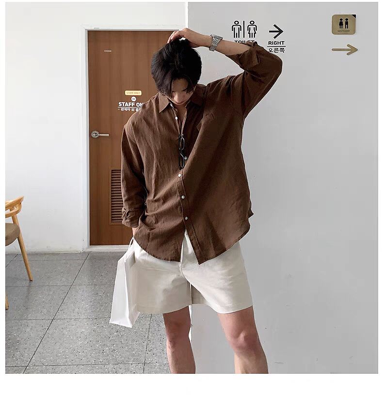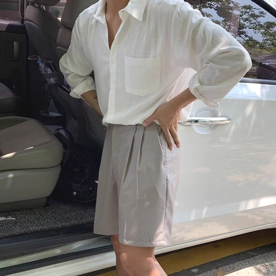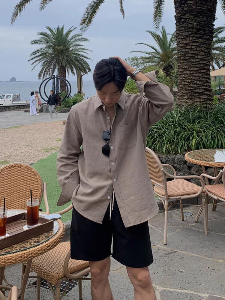 남성용 레이지 스타일 코튼 린넨 화이트 셔츠, 루즈한 긴팔 자외선 차단 가디건, 얇고 통기성이 좋은 린넨 워크 셔츠스토어 가기