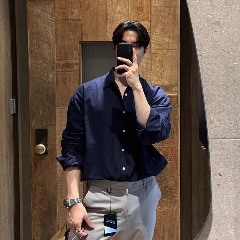 • 린넨 긴팔 셔츠 네이비블루
