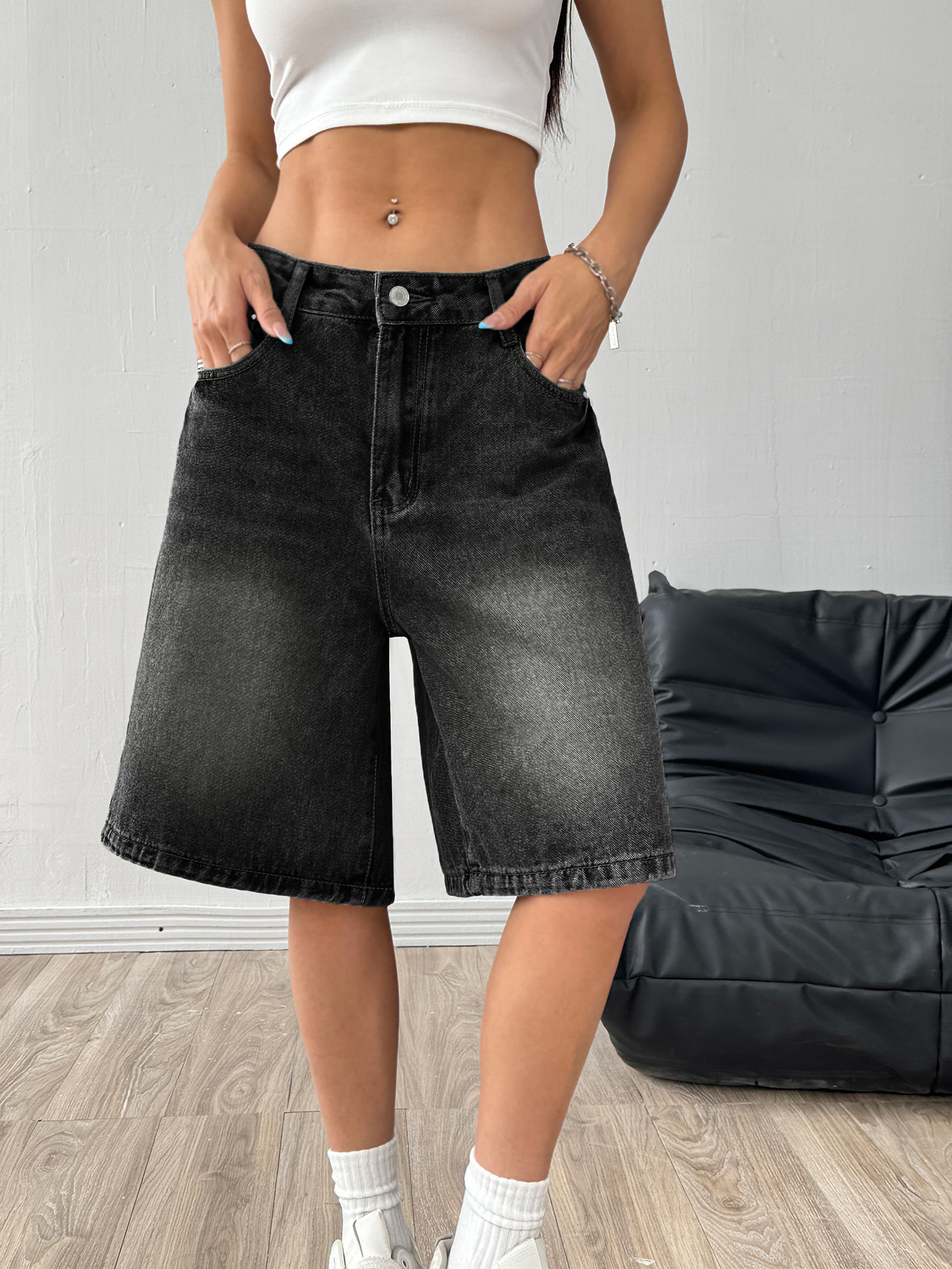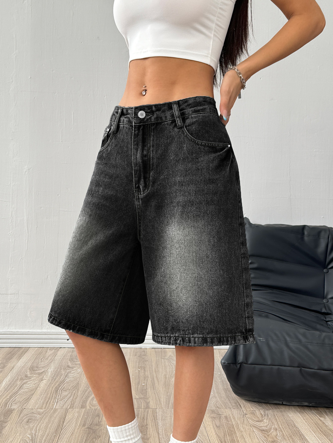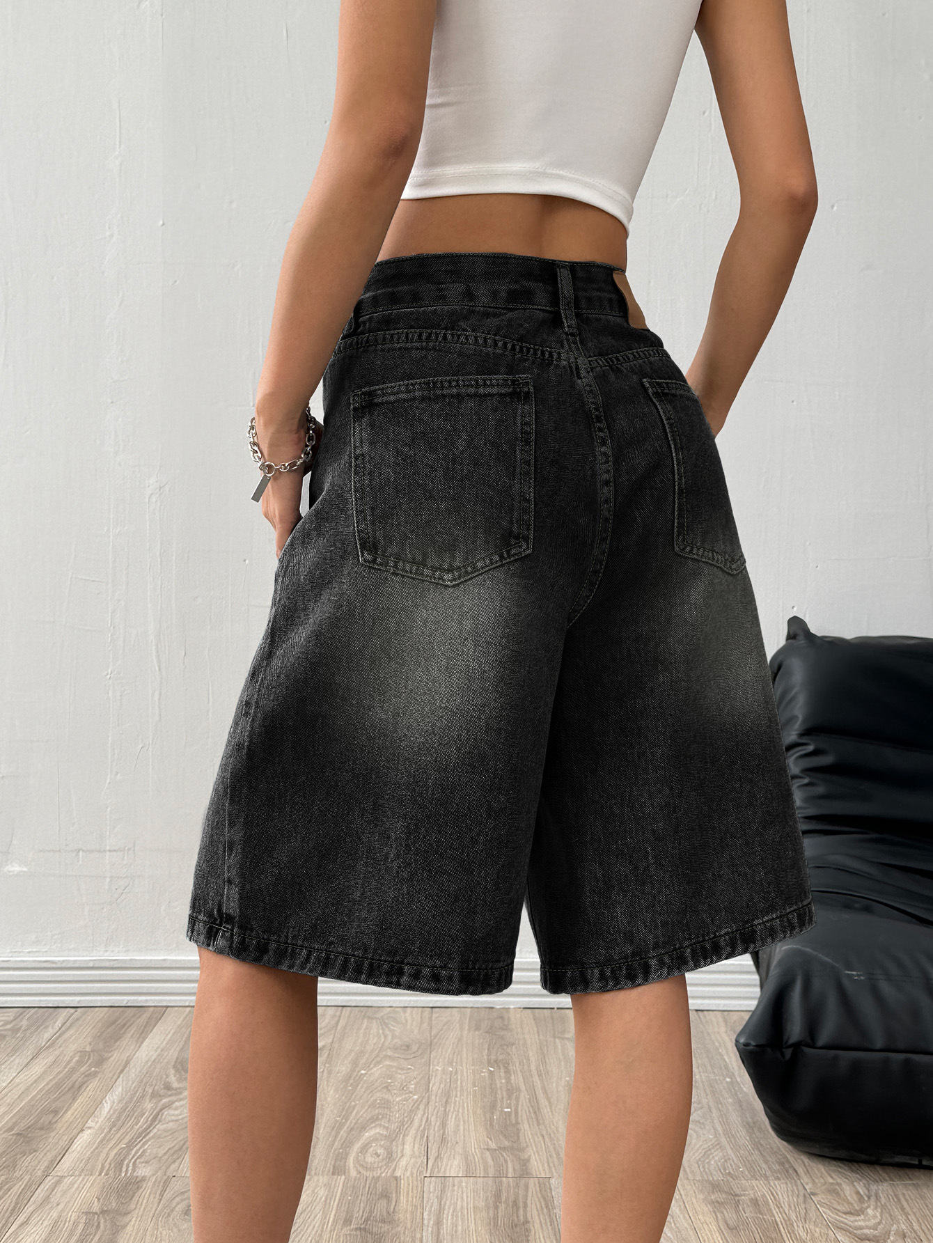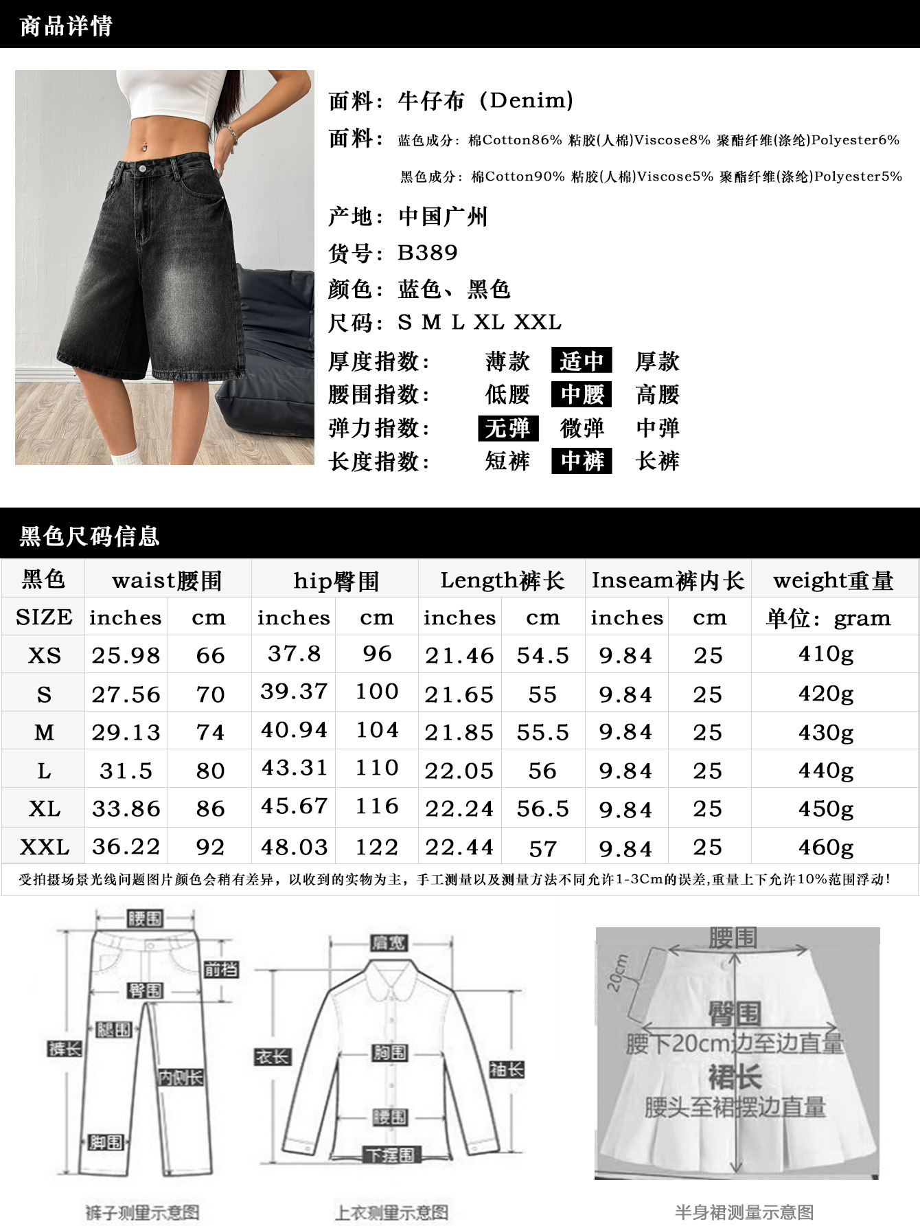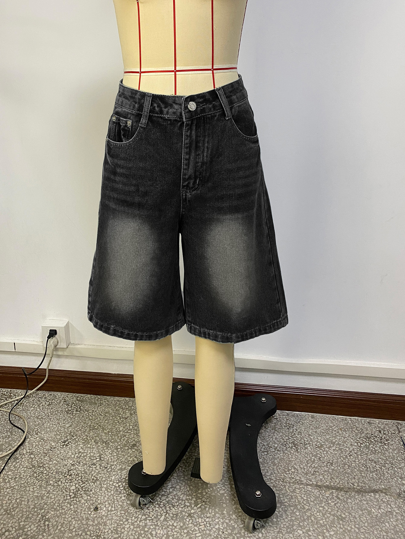 해외 무역 아마존 유럽 및 미국 공장 도매 블랙 데님 반바지 여성 캐주얼 워싱 5부 바지스토어 가기