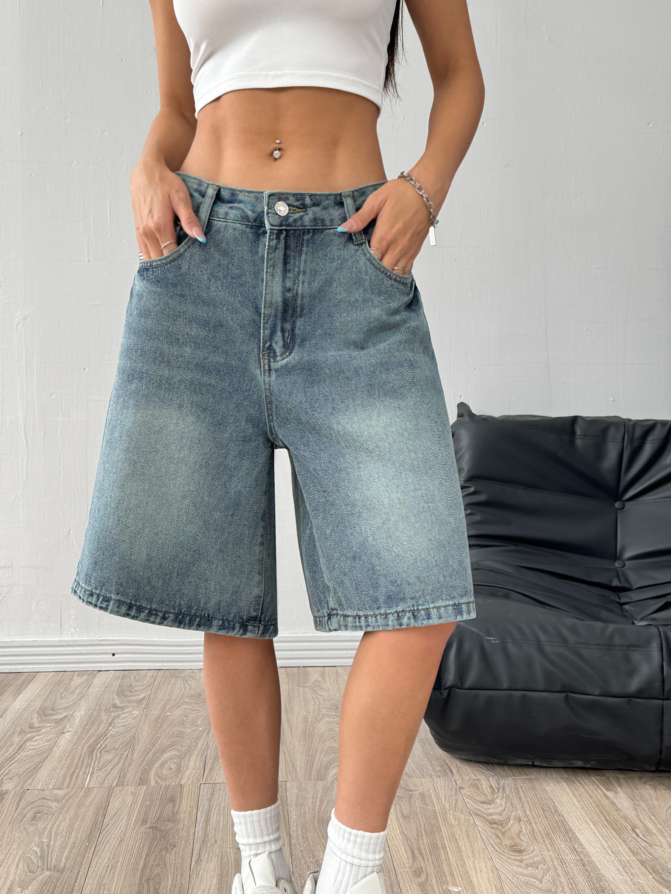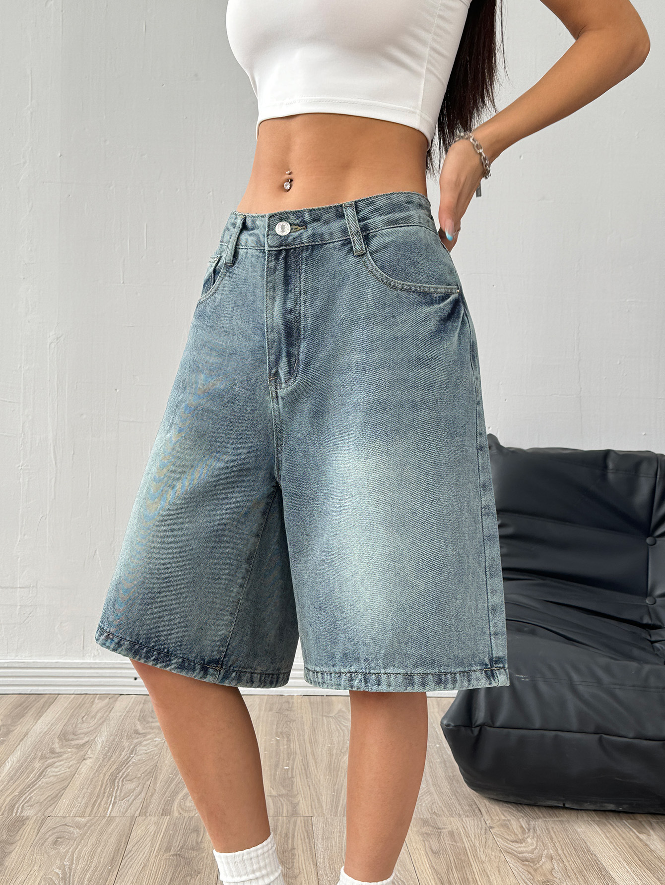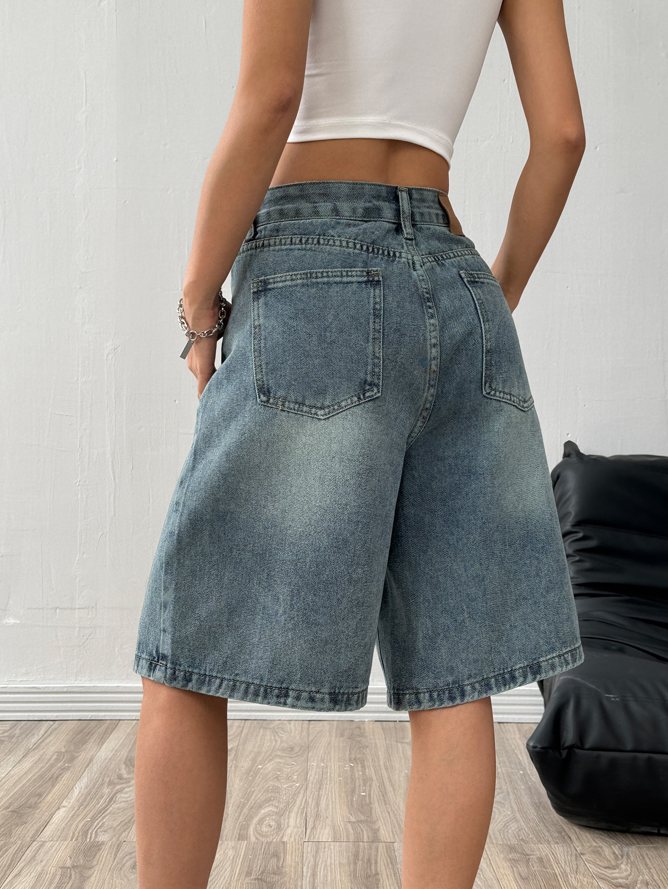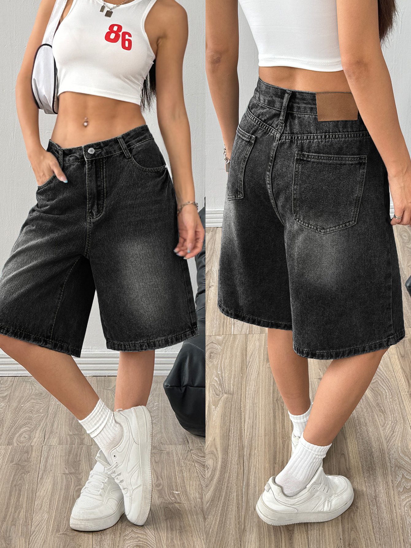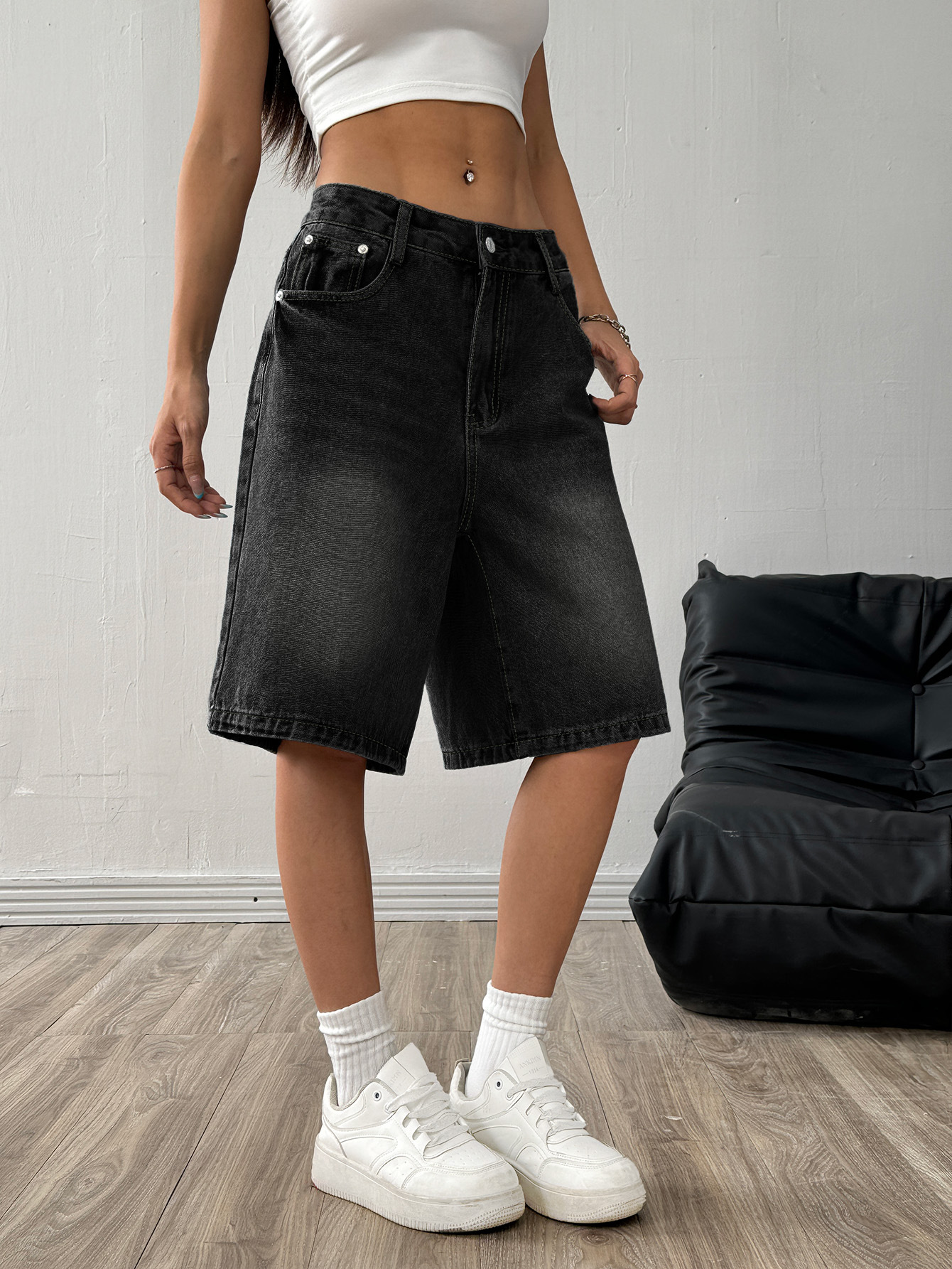 해외 무역 아마존 유럽 및 미국 공장 도매 블랙 데님 반바지 여성 캐주얼 워싱 5부 바지스토어 가기