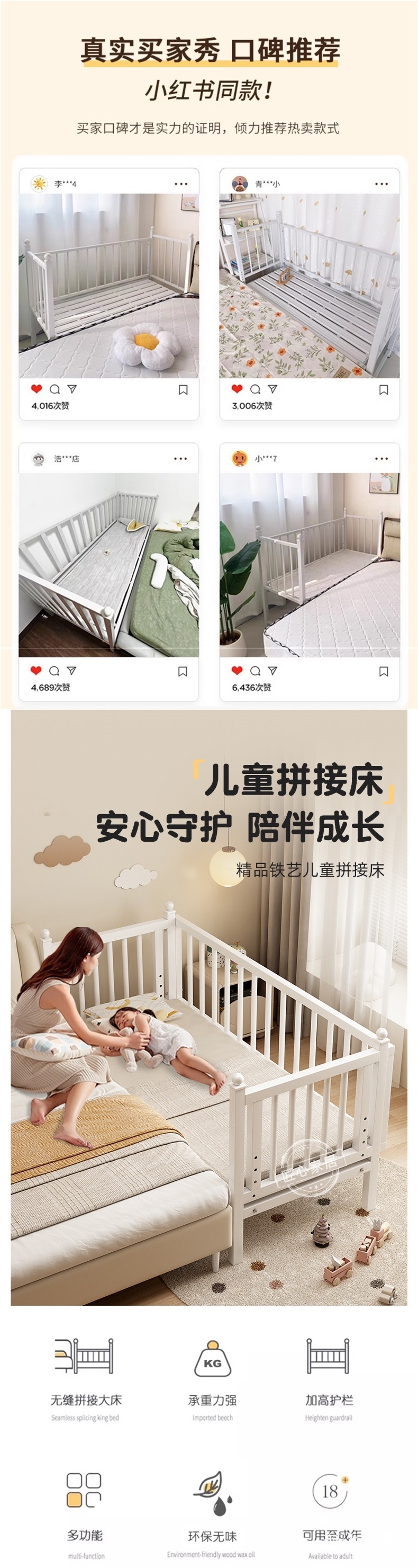 단철 어린이 침대 접합 침대 유아용 침대 아기 침대 강철 프레임 싱글 침대 확대 침대 옆 확대 접합 침대