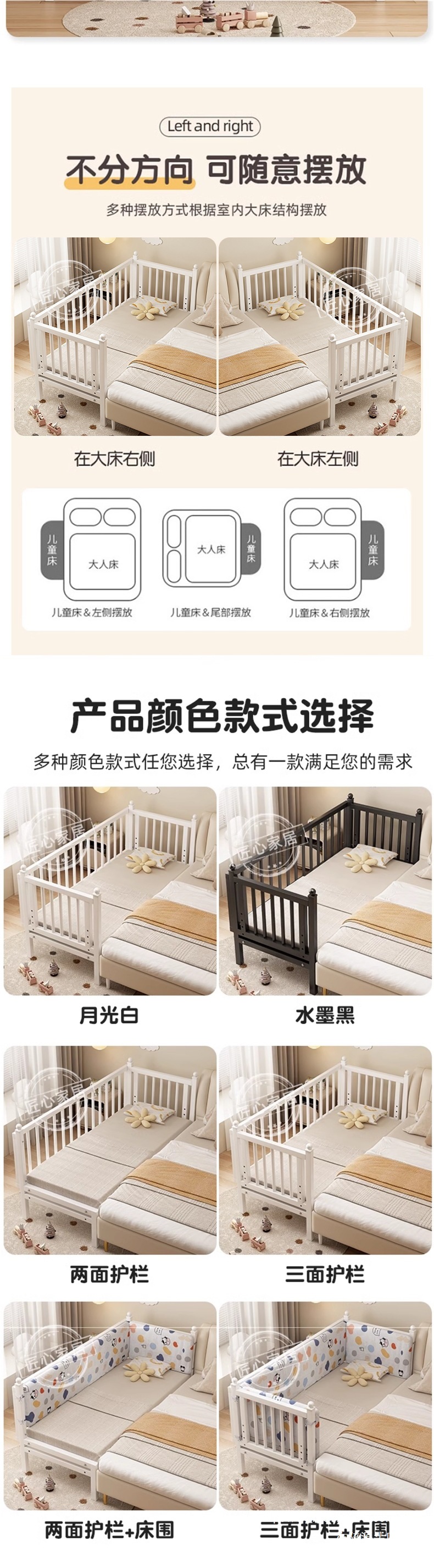 • [크림화이트] 삼면가드레일 + 5cm 코코넛팜 매트리스 + 베드사이드 [어른들도 소음 없이 잠잘 수 있음]