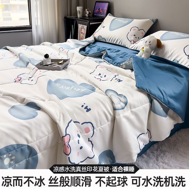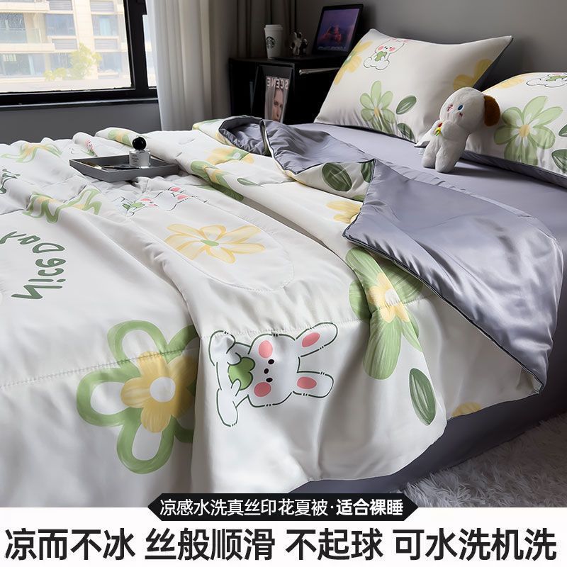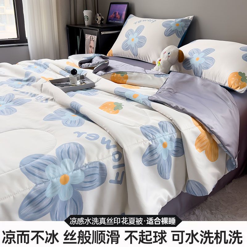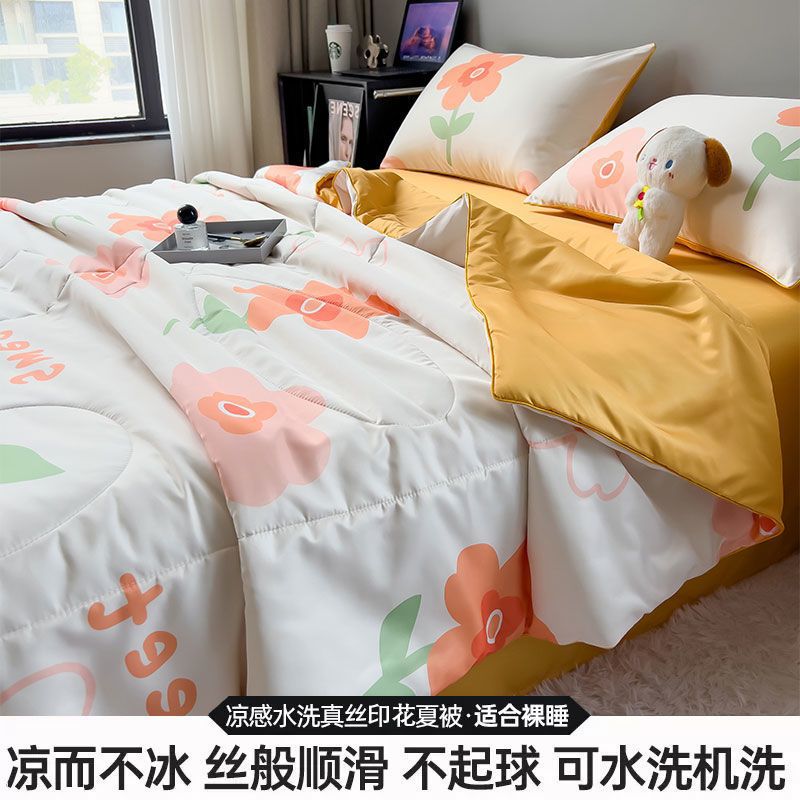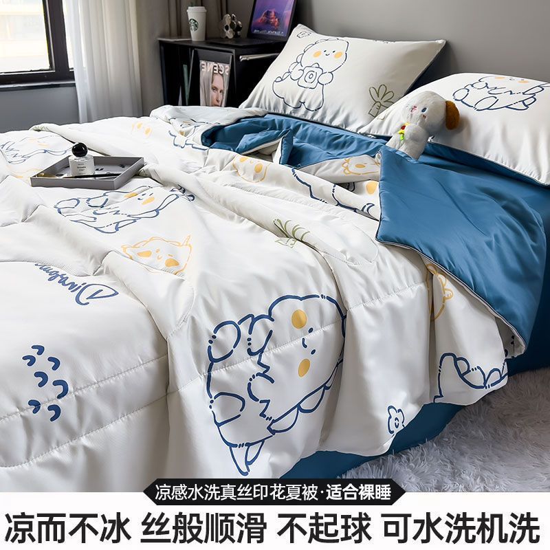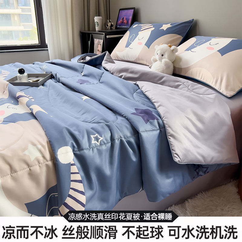 워시드 실크 여름 이불 4피스 여름 이불 에어컨 이불 여름 얼음 실크 이불 코어 기계 세탁 가능한 여름 얇은 이불스토어 가기