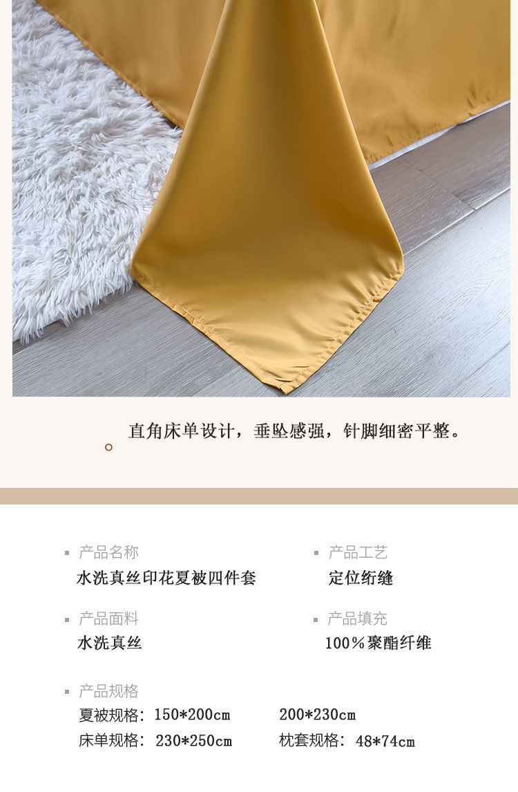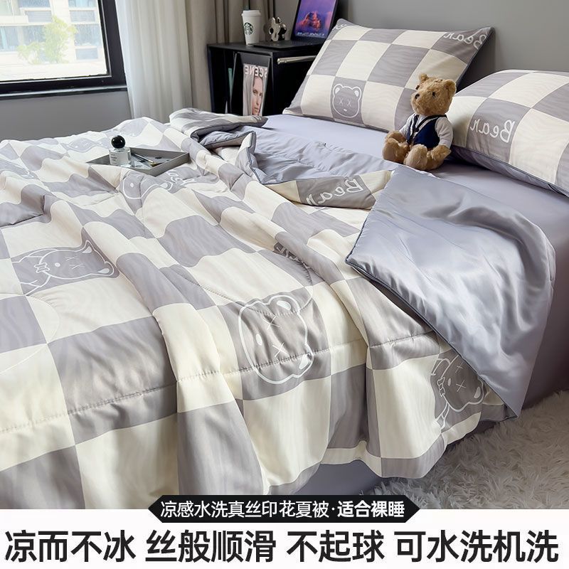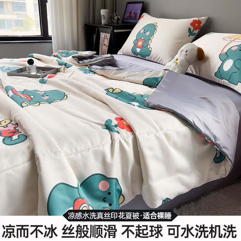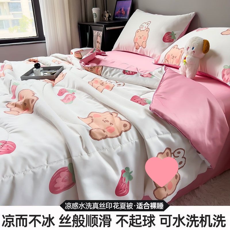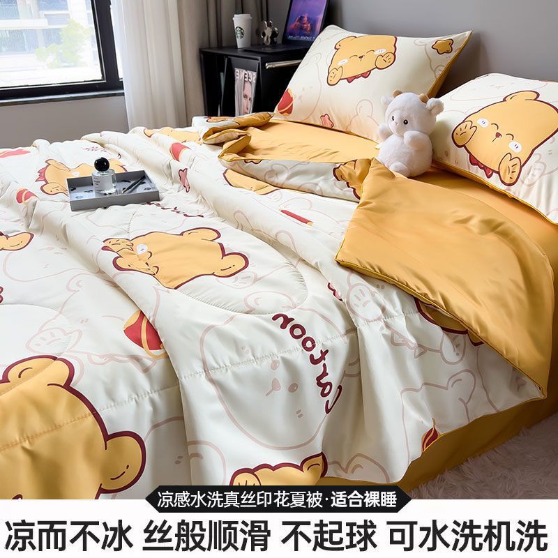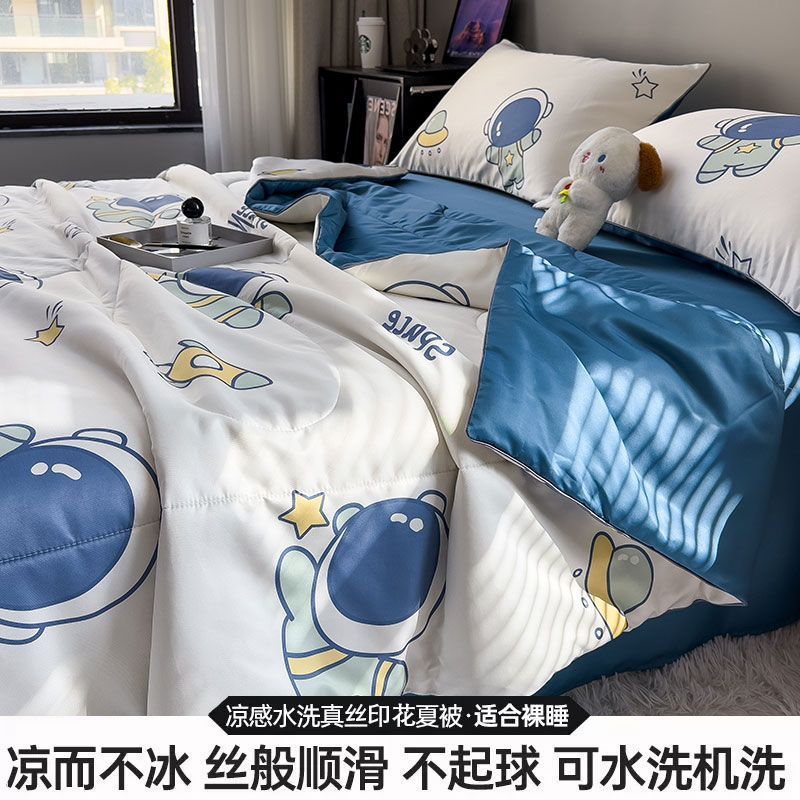 워시드 실크 여름 이불 4피스 여름 이불 에어컨 이불 여름 얼음 실크 이불 코어 기계 세탁 가능한 여름 얇은 이불스토어 가기
