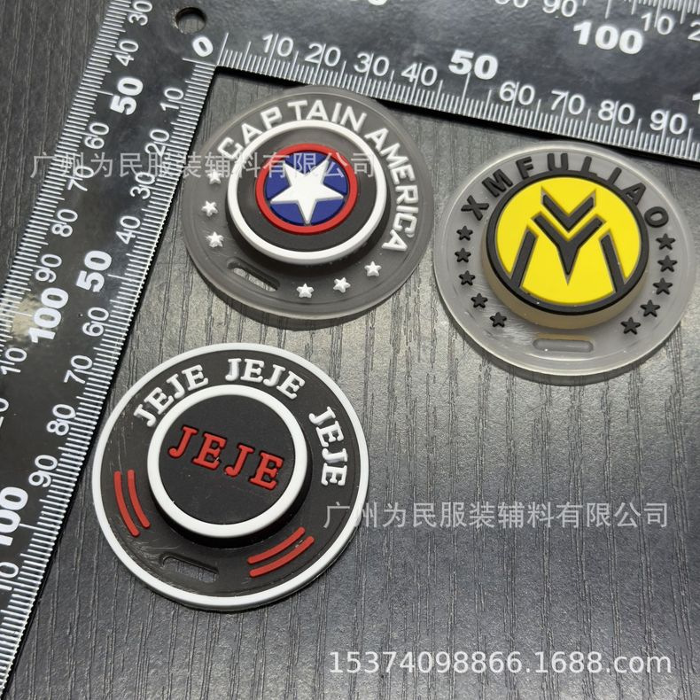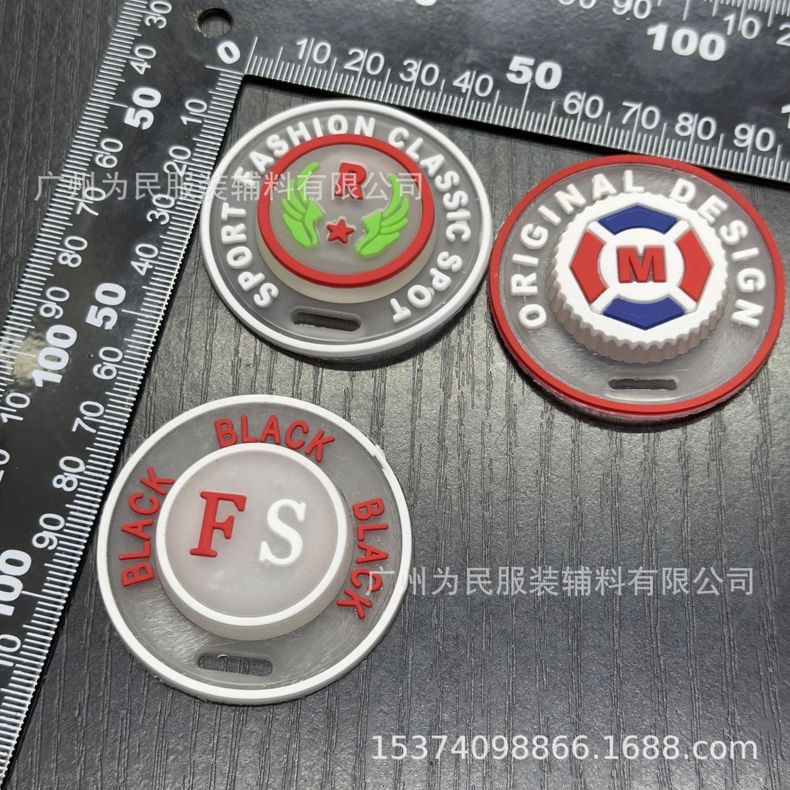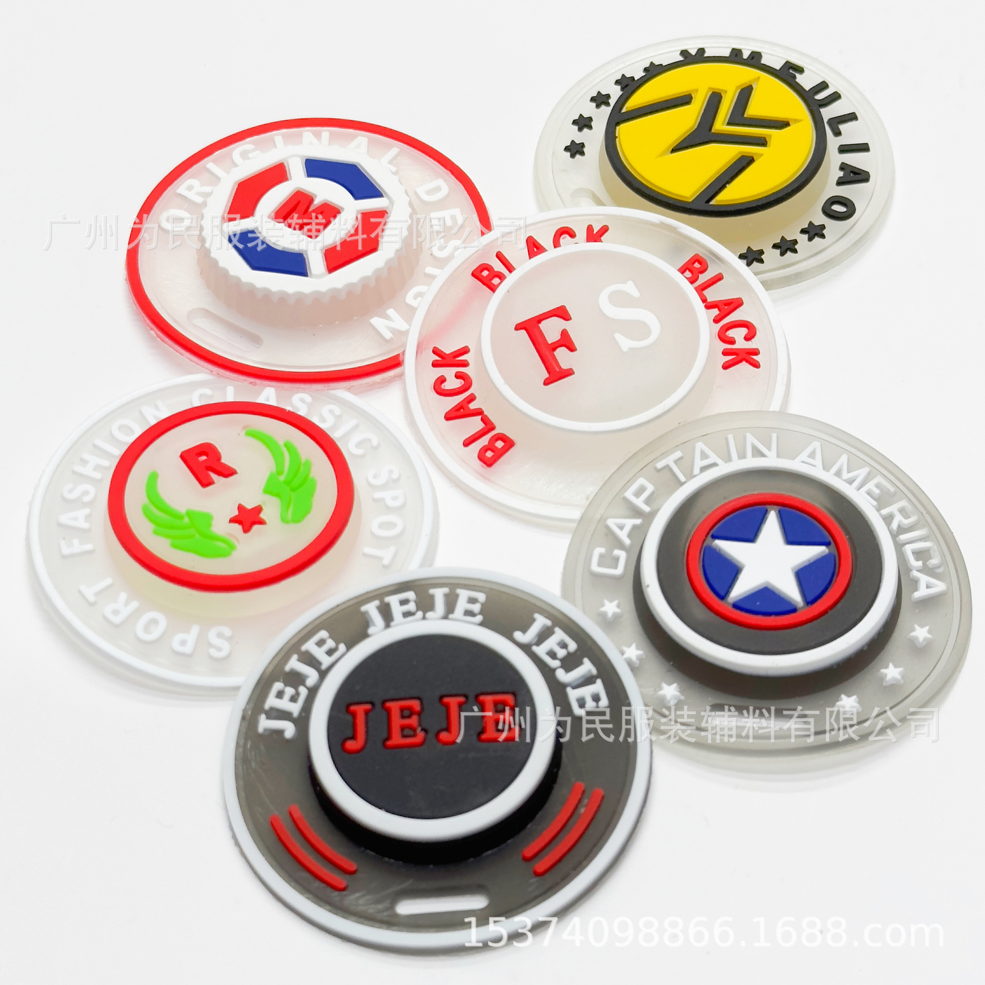 샘플 테스트용 어린이용 해외 인기 섬유 부자재, 글자가 들어간 터치하면 불이 켜지는 원형 플라스틱 라벨, 소프트 젤 스탬프