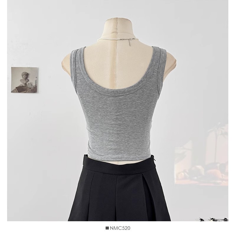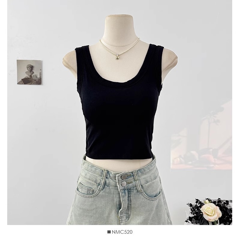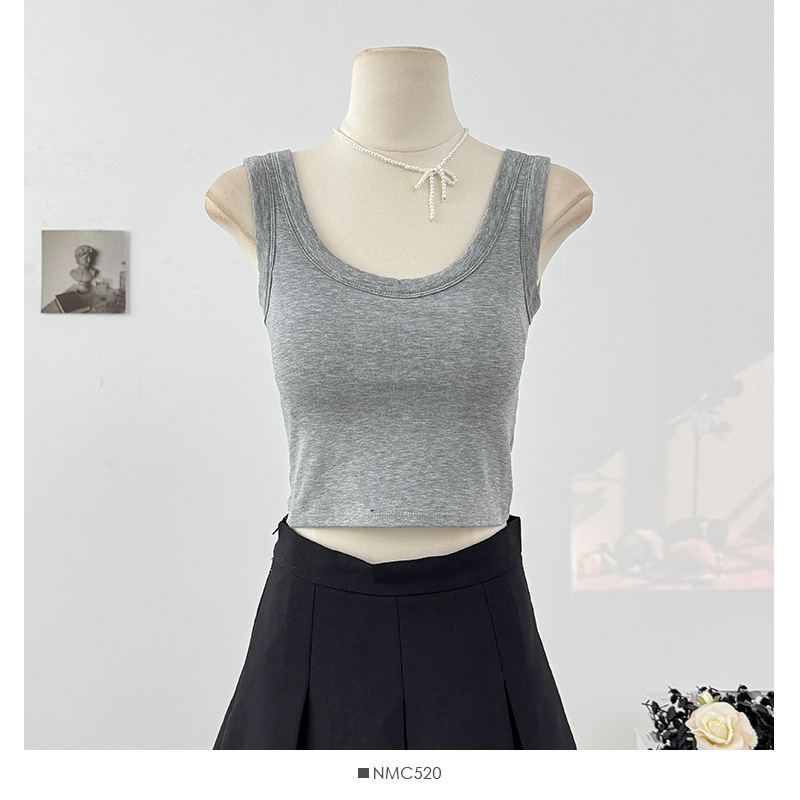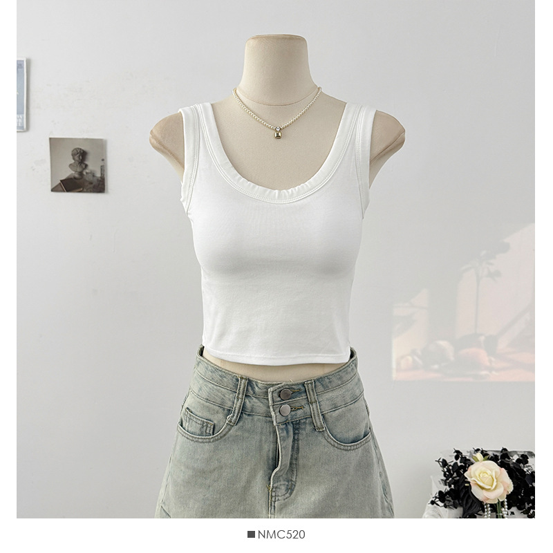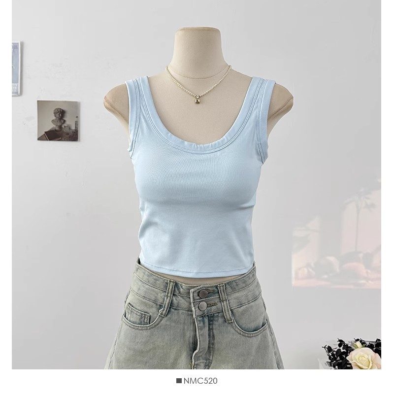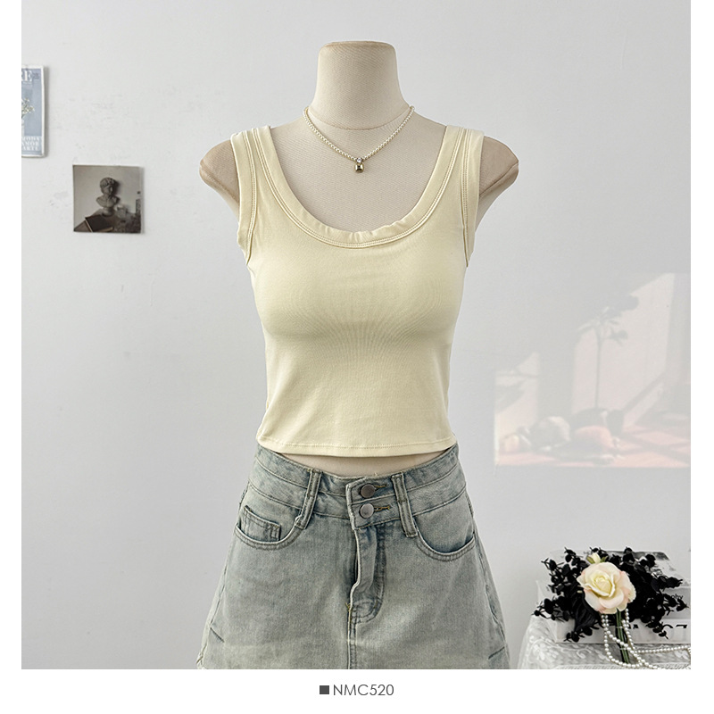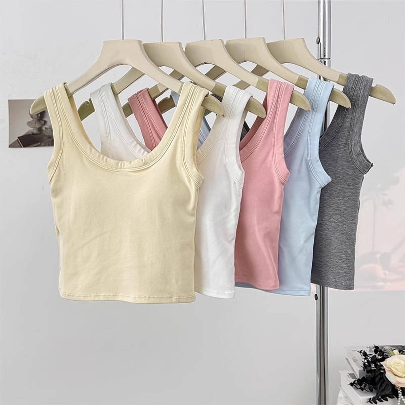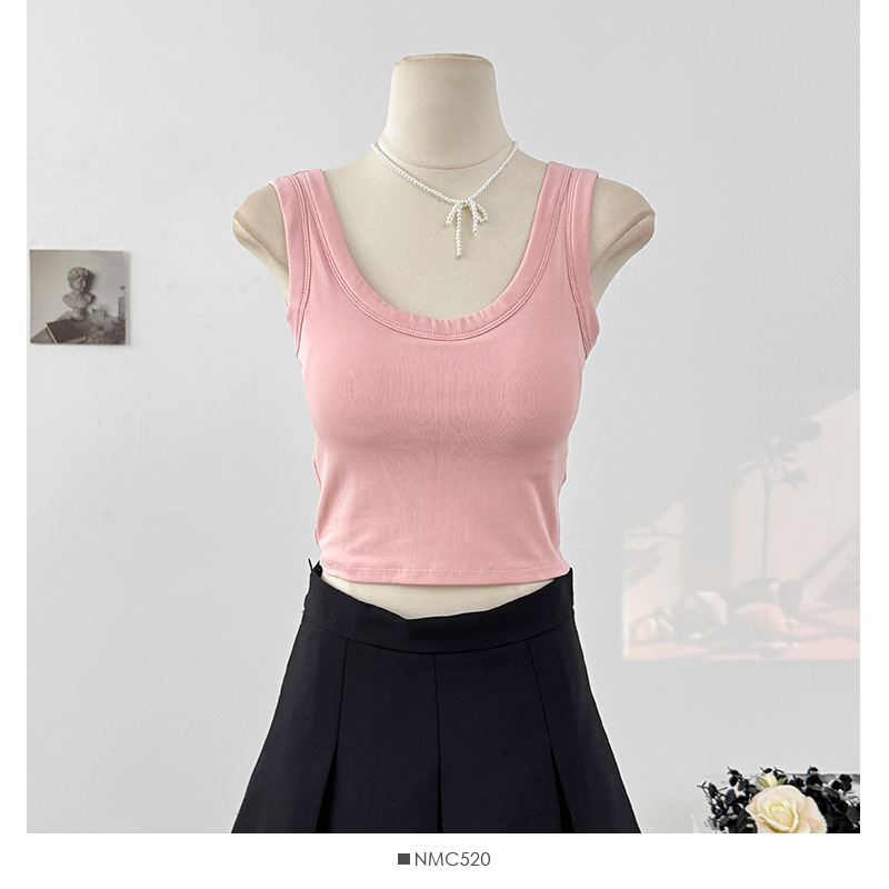 새로운 스타일의 심플한 짧은 배꼽 노출 캔디 컬러 아름다운 백 조끼 아우터 솔리드 컬러 다용도 고정 컵 가슴 패드 슬림 백스토어 가기