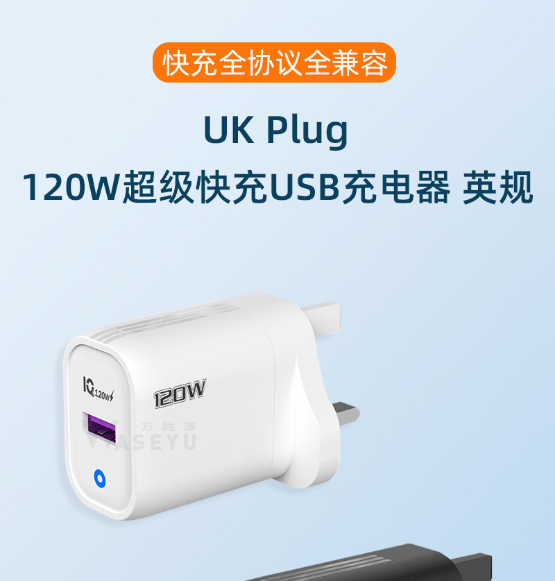 Huawei Xiaomi OPPO 영국 표준 충전 헤드에 적합한 모든 프로토콜 완전 호환 120W 초고속 충전 충전기스토어 가기