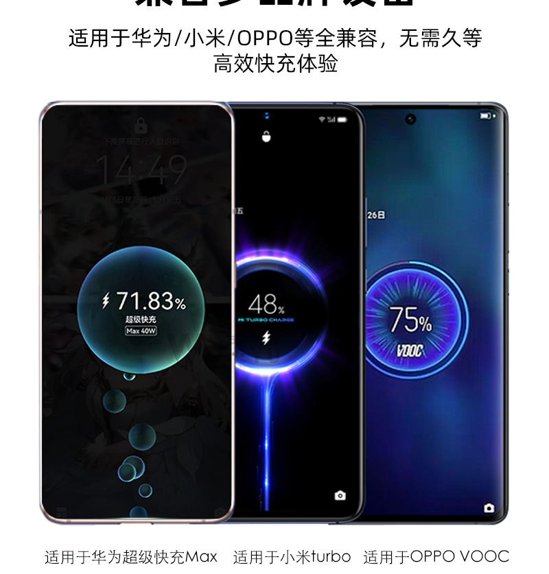 全协议全兼容120W超级快充充电器 适用于华为小米OPPO英规充电头