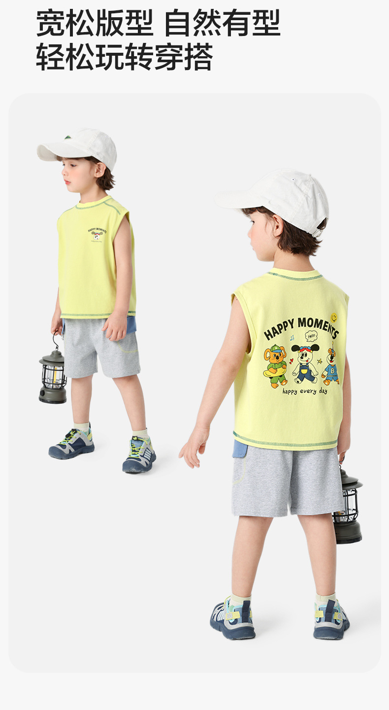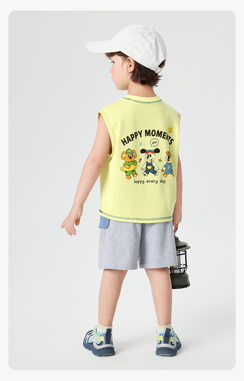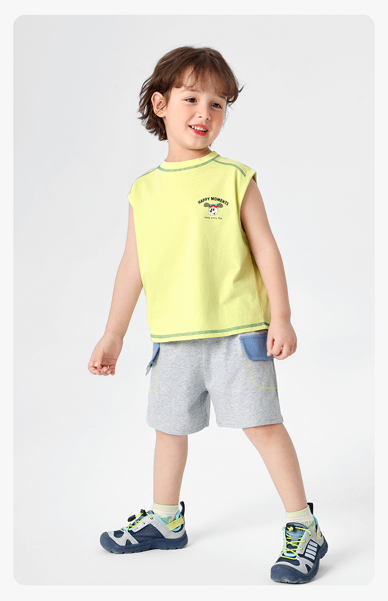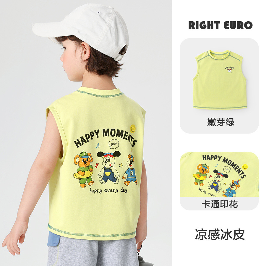 오른쪽 유럽 소년 여름 조끼 반바지 아동 의류 아동용 아기 소년 민소매 티셔츠 여름 얇은 스타일 유행스토어 가기