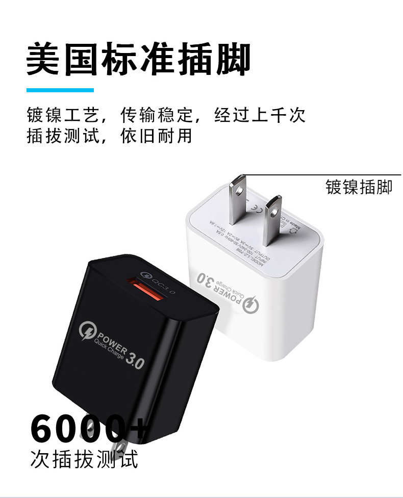 5V3A 휴대 전화 충전기 EU 및 미국 규정 안전 18/20W 고속 충전 QC3.0 충전 헤드 어댑터 도매스토어 가기