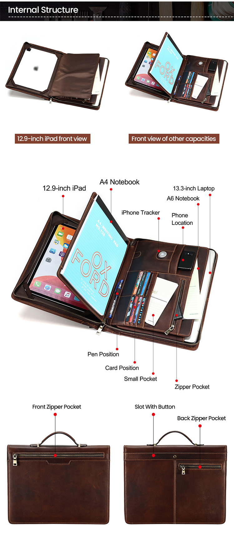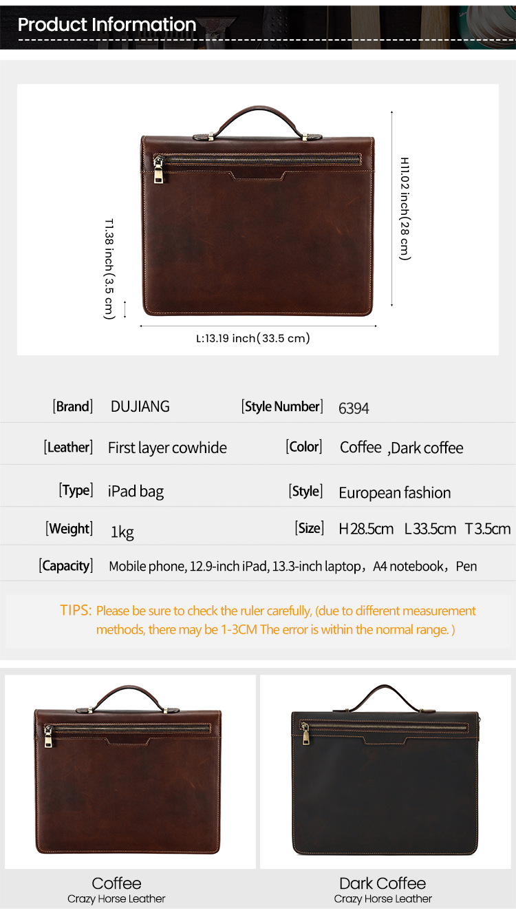 13.3 인치 애플 컴퓨터 보호 케이스 미친 말 가죽 다기능 전기에 적합한 맞춤형 노트북 가방 휴대용