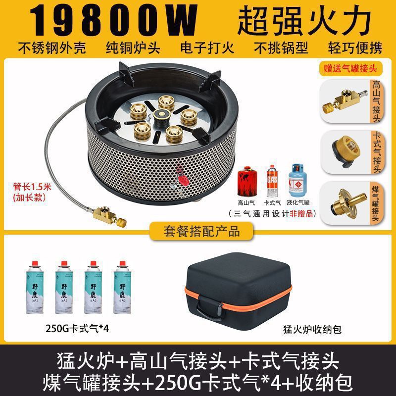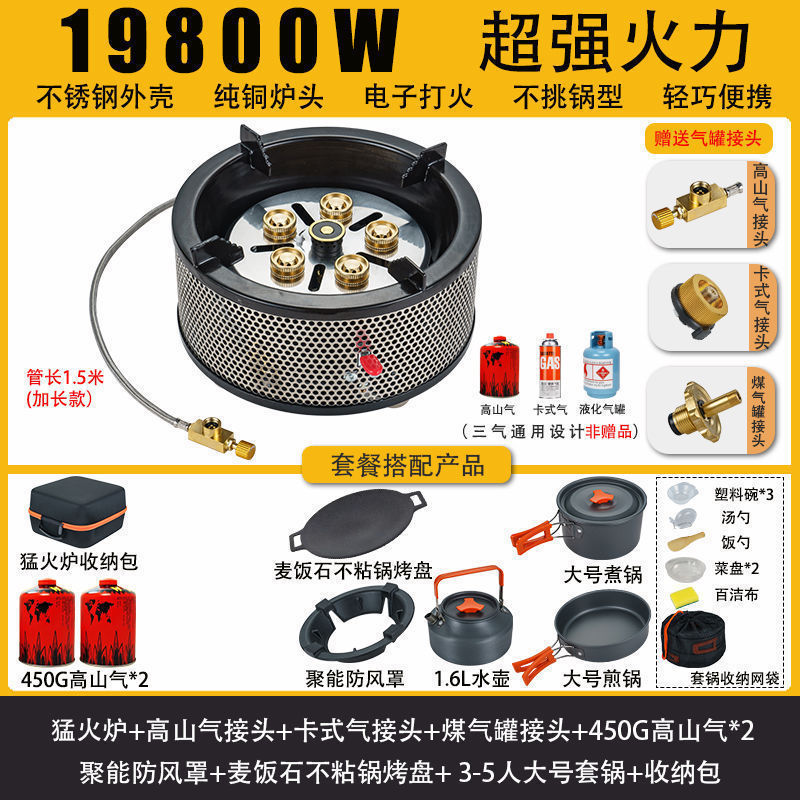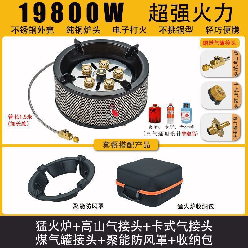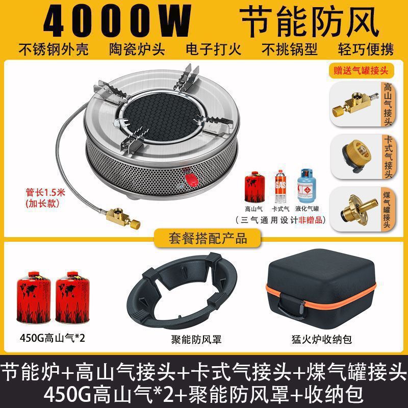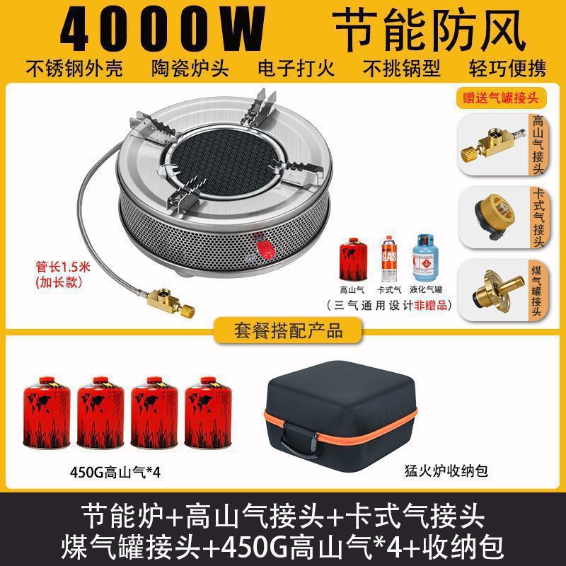 • Six Star Meng 스토브 - 에너지 수집 방풍 커버 + 플랫 가스 카드 가스 커넥터 + 보관 가방
