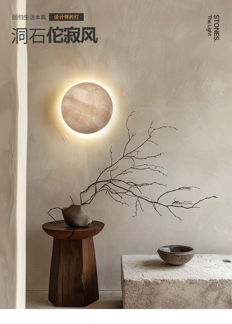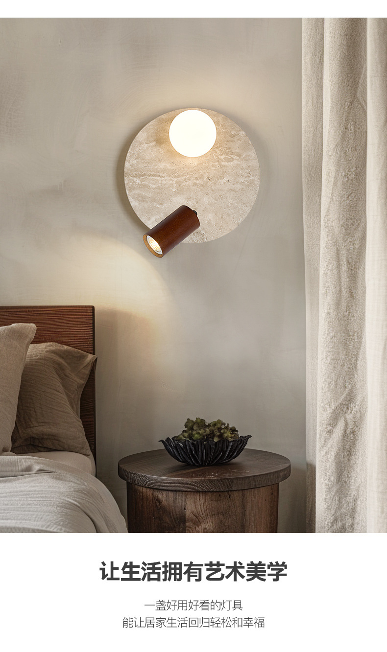 노란색 대리석 크림 일본식 침대 옆 벽 램프 북유럽 현대 미니멀리스트 B&B 마스터 침실 복도 통로 입구 홈