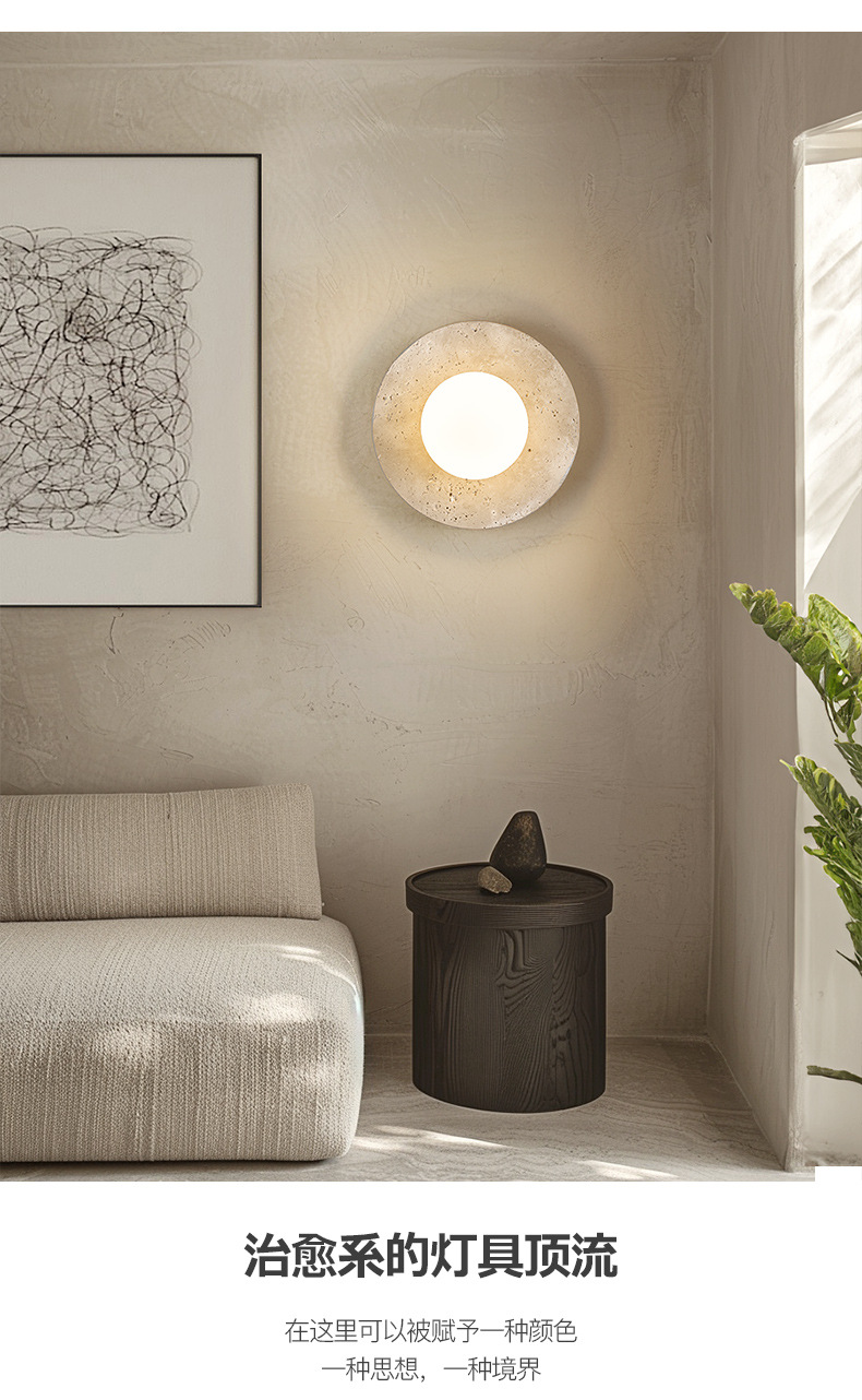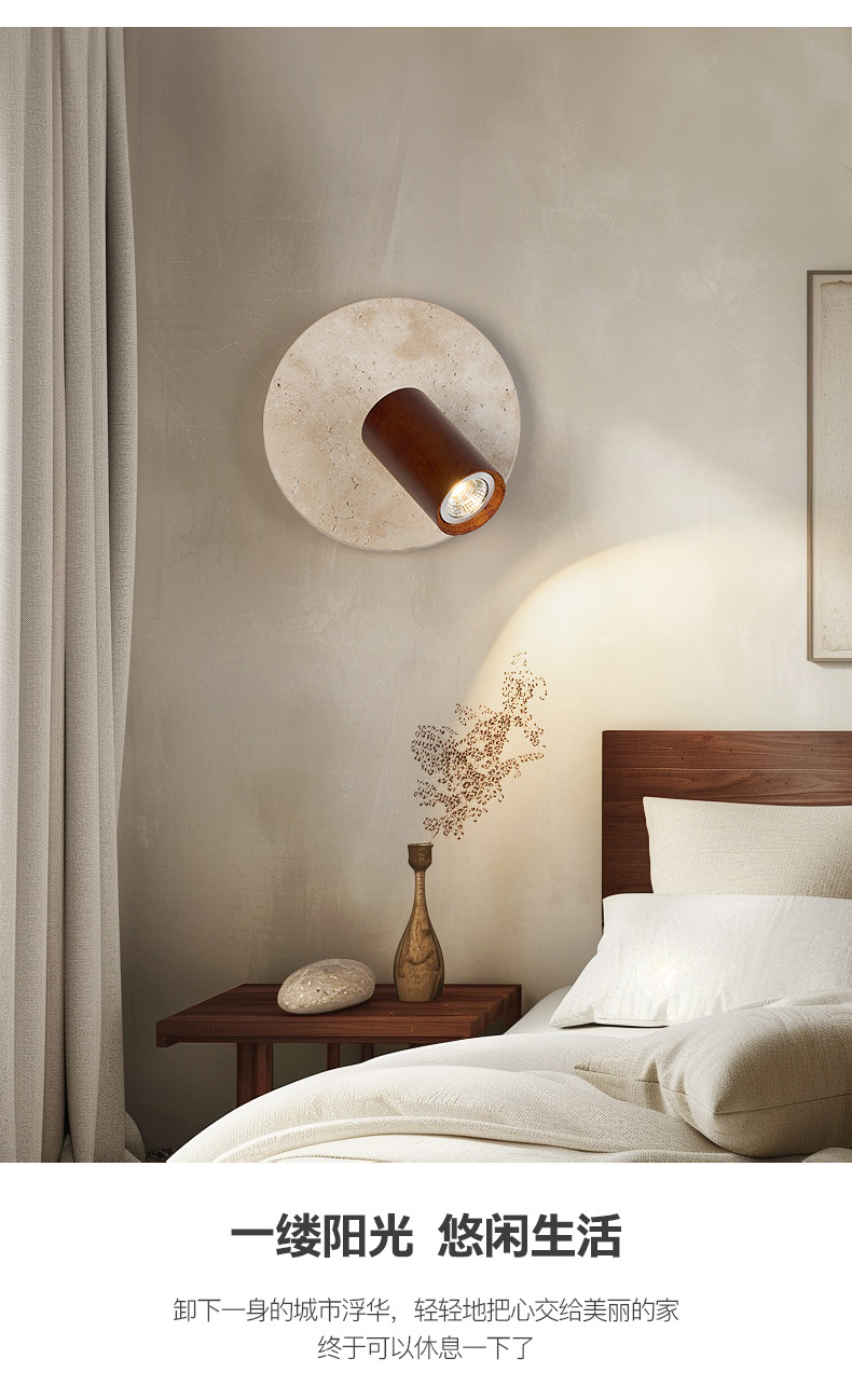 노란색 대리석 크림 일본식 침대 옆 벽 램프 북유럽 현대 미니멀리스트 B&B 마스터 침실 복도 통로 입구 홈스토어 가기