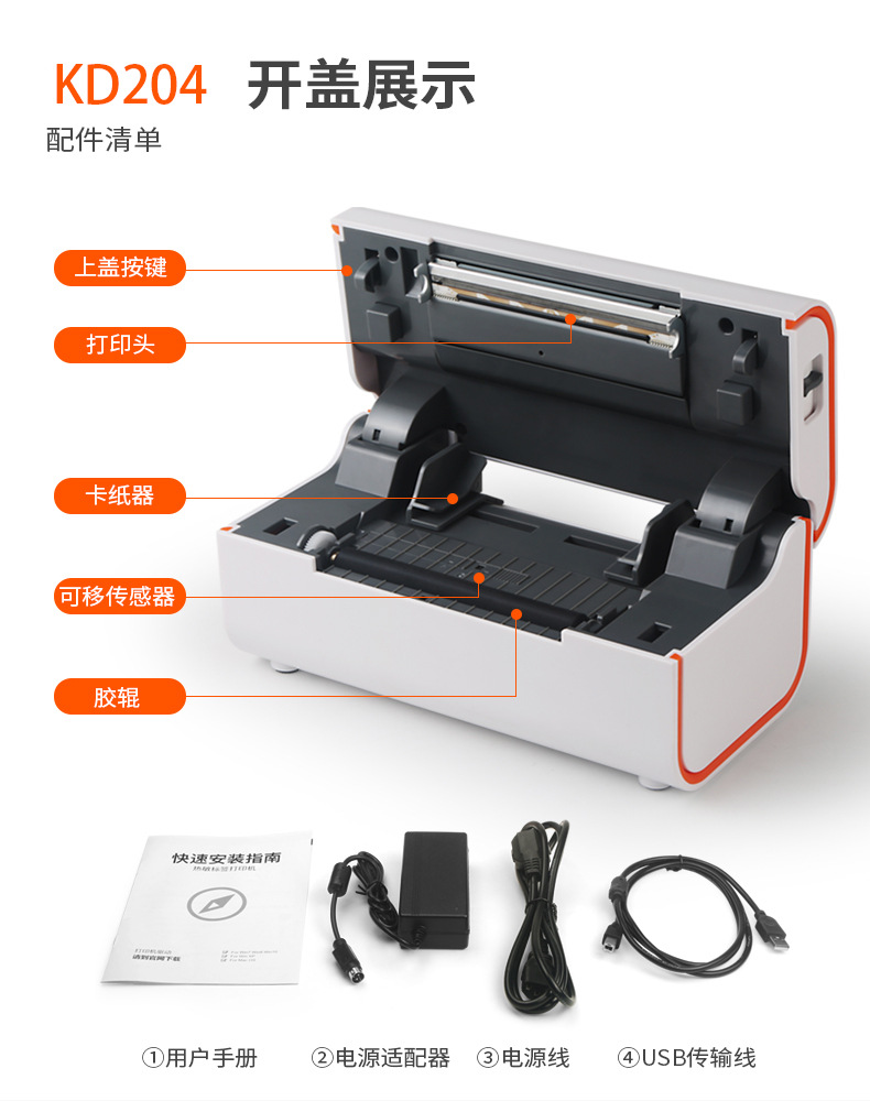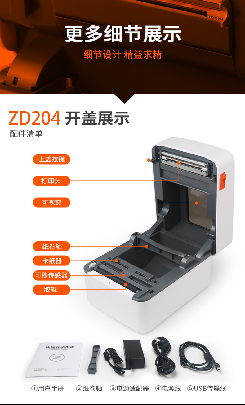 Hongshan KD204 라벨 프린터 블루투스 연결 감열지 익스프레스 데스크탑 라벨 바코드 프린터스토어 가기