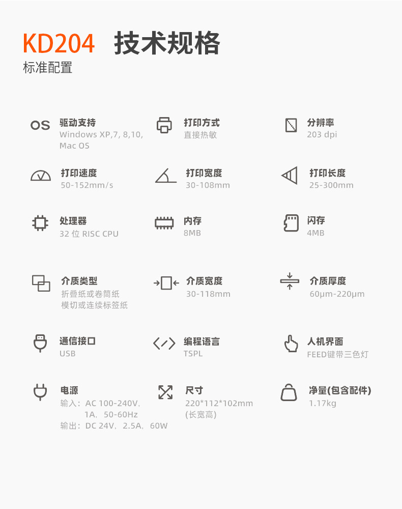 Hongshan KD204 라벨 프린터 블루투스 연결 감열지 익스프레스 데스크탑 라벨 바코드 프린터