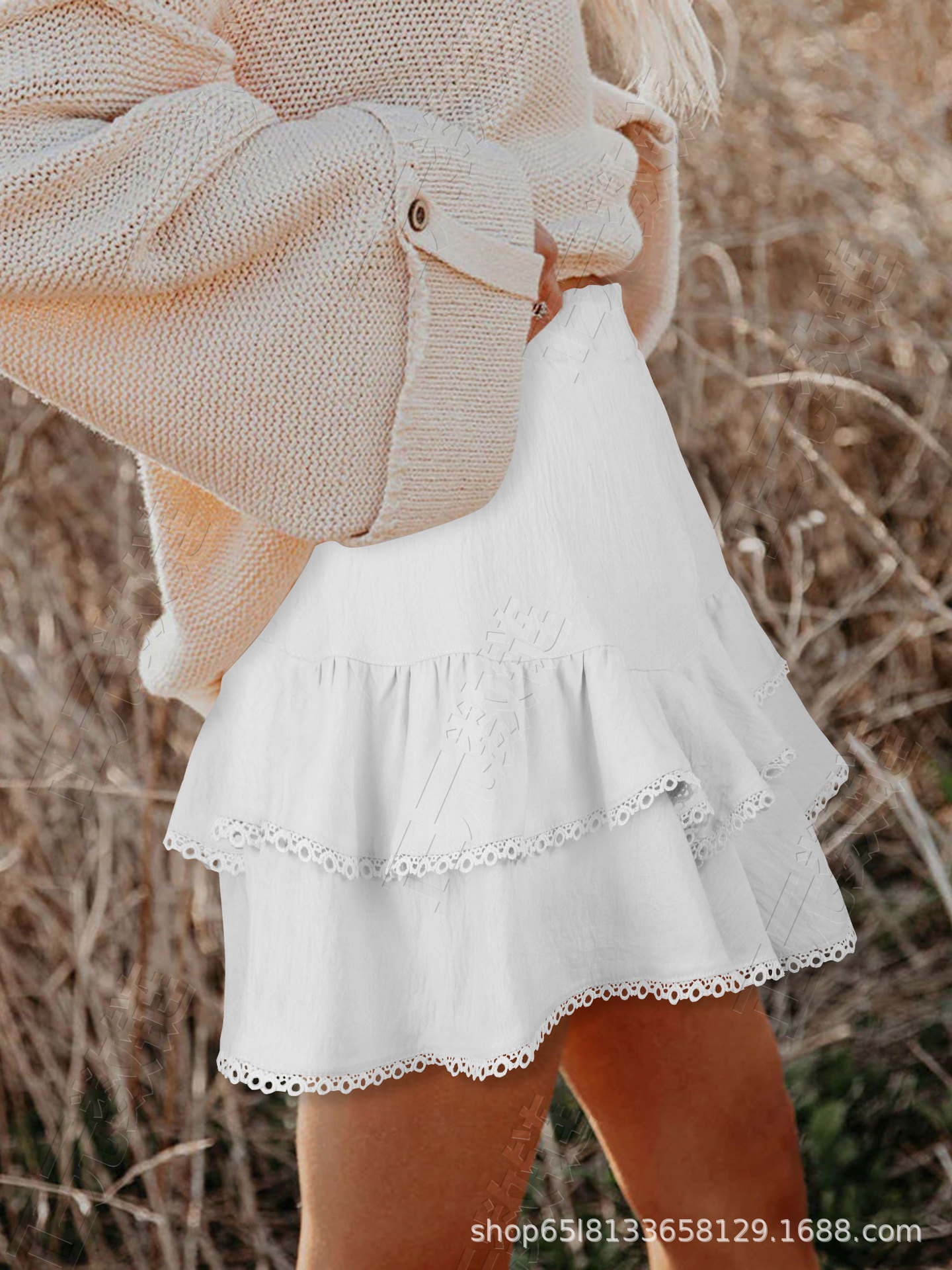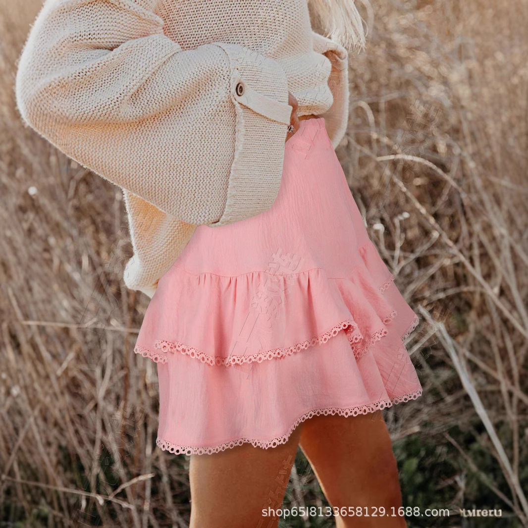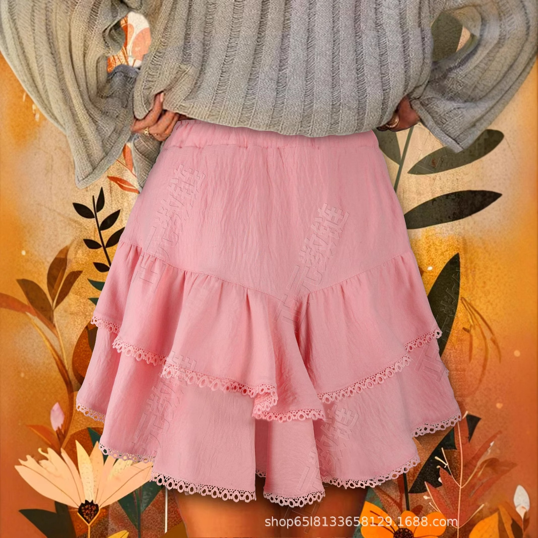 아마존 유럽과 미국의 국경 간 여성 캐주얼 보헤미안 주름 레이어드 스커트 하이 웨이스트 케이크 스커트