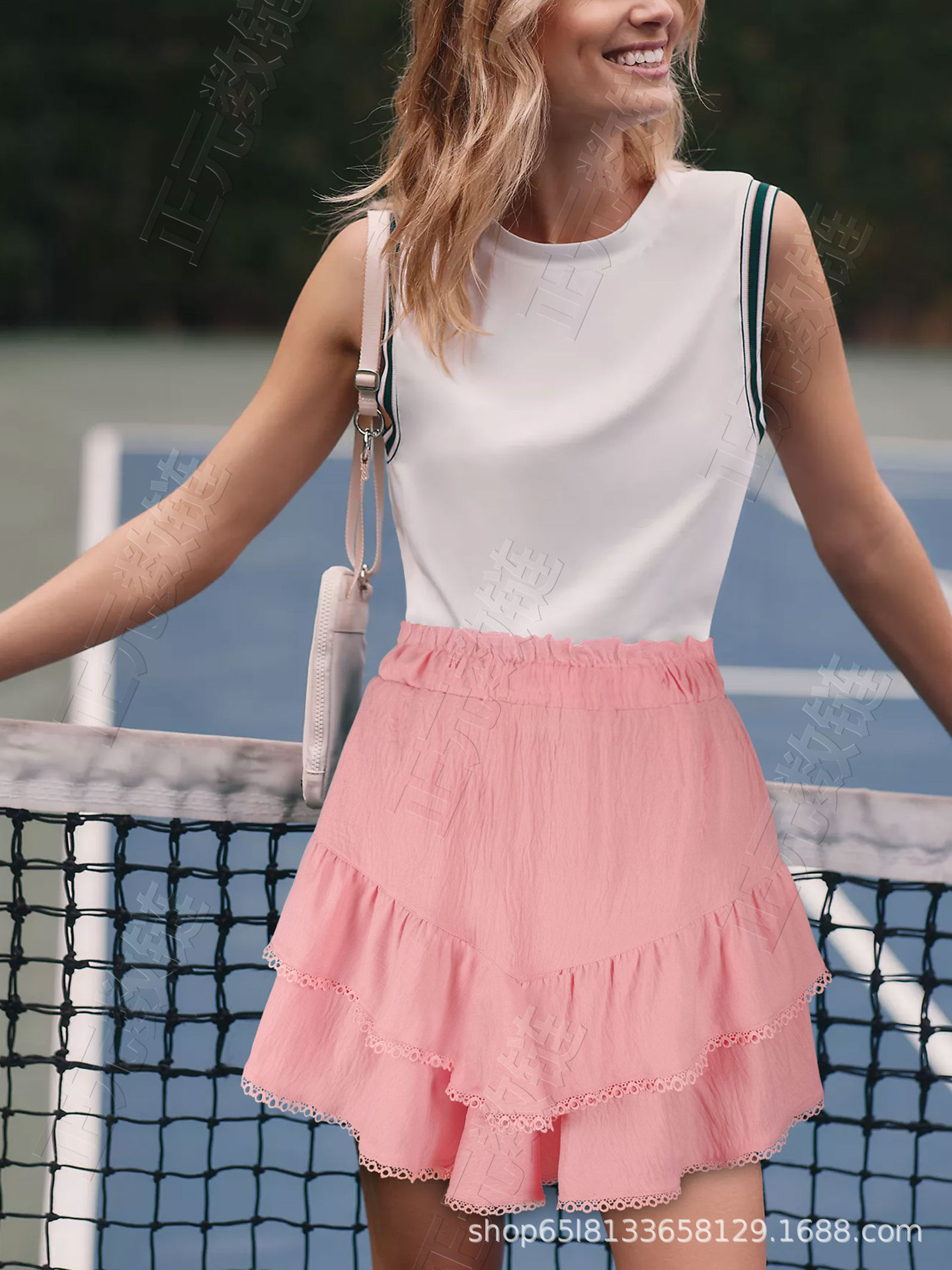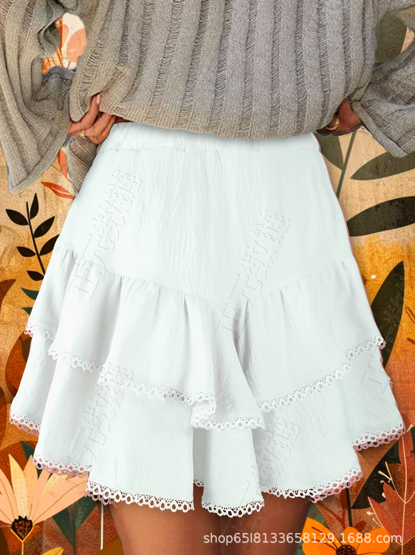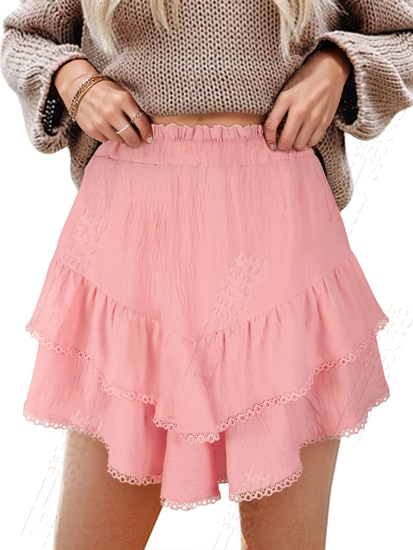 아마존 유럽과 미국의 국경 간 여성 캐주얼 보헤미안 주름 레이어드 스커트 하이 웨이스트 케이크 스커트