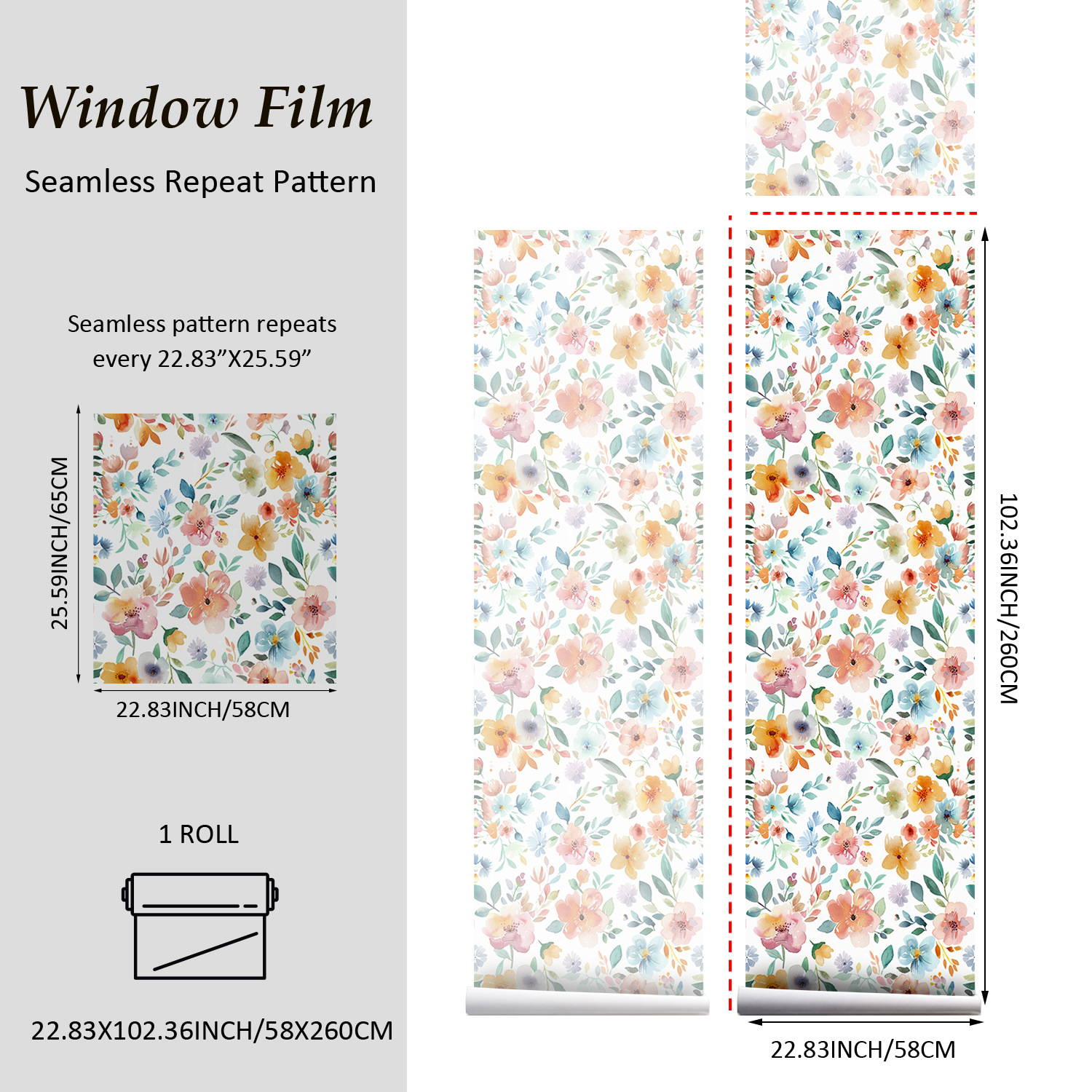 FunlifeTEMU 새로운 봄 창 스티커 빛 복숭아 민트 녹색 수채화 꽃 정전기 무료 필름 SE1258