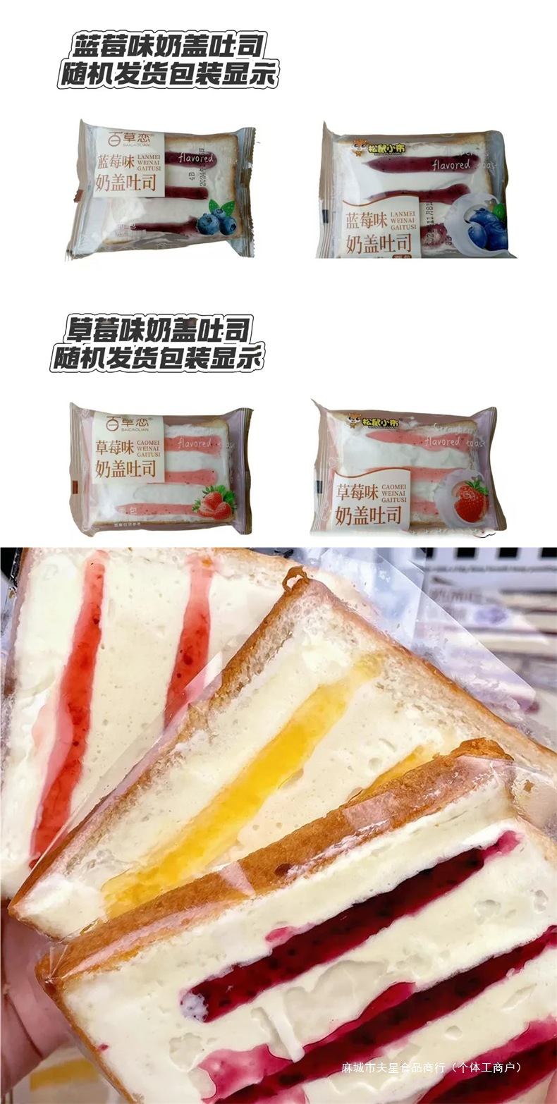 블루 스트로베리 밀크 커버 토스트 빵 전체 상자 아침 식사 대체 학생 과자 건강 간식 스낵 스낵 식품스토어 가기