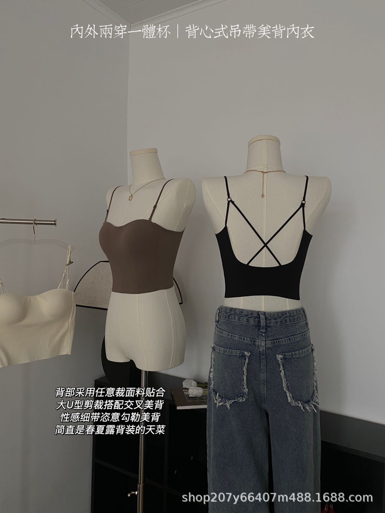 여름용 U자형 등이 예쁜 여성 속옷, 얇은 소형 가슴 모아주는 노라인 노출방지 끈나시 이너웨어 브라탑스토어 가기