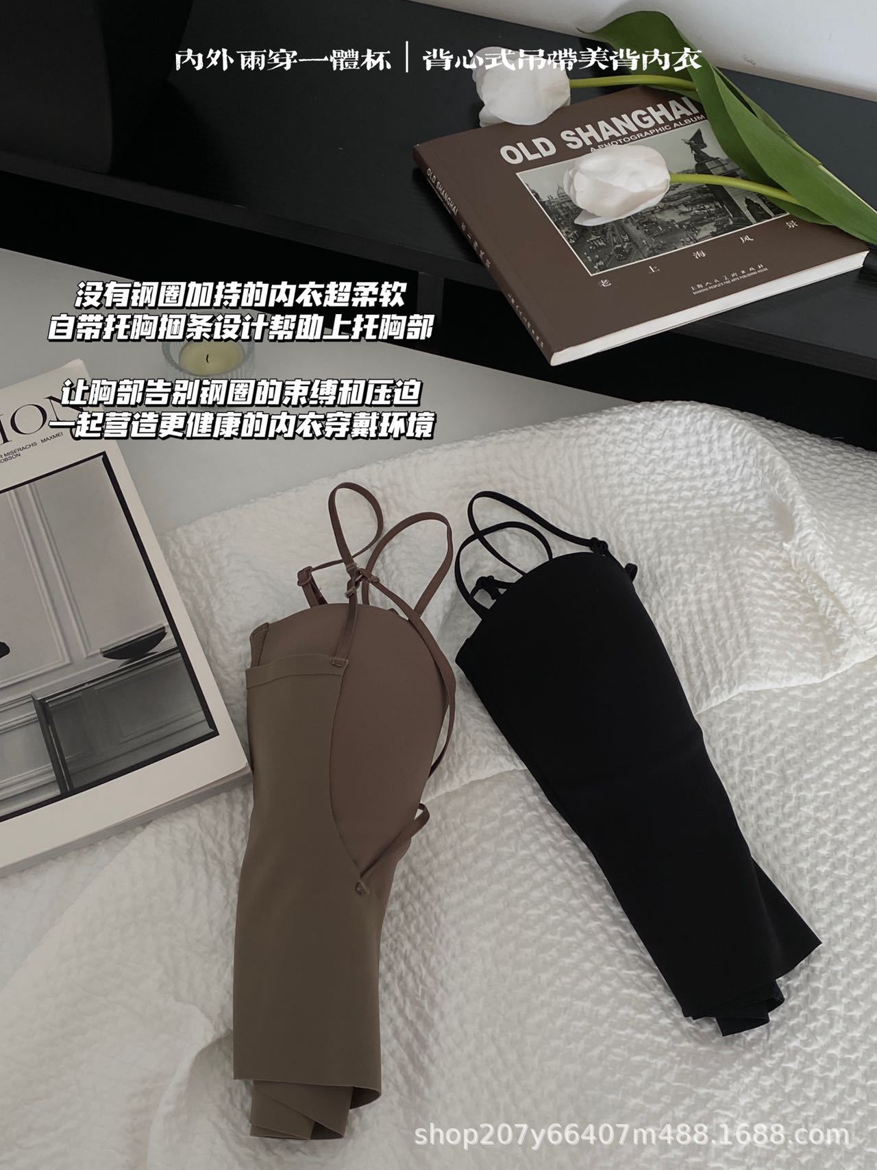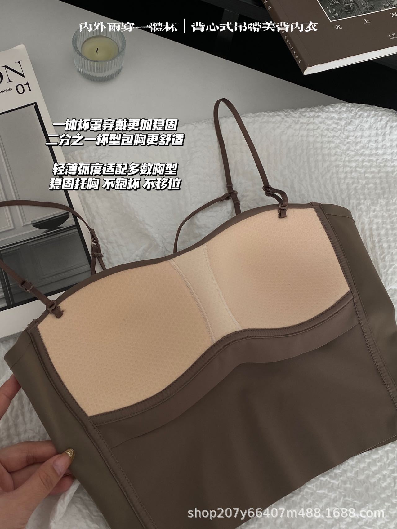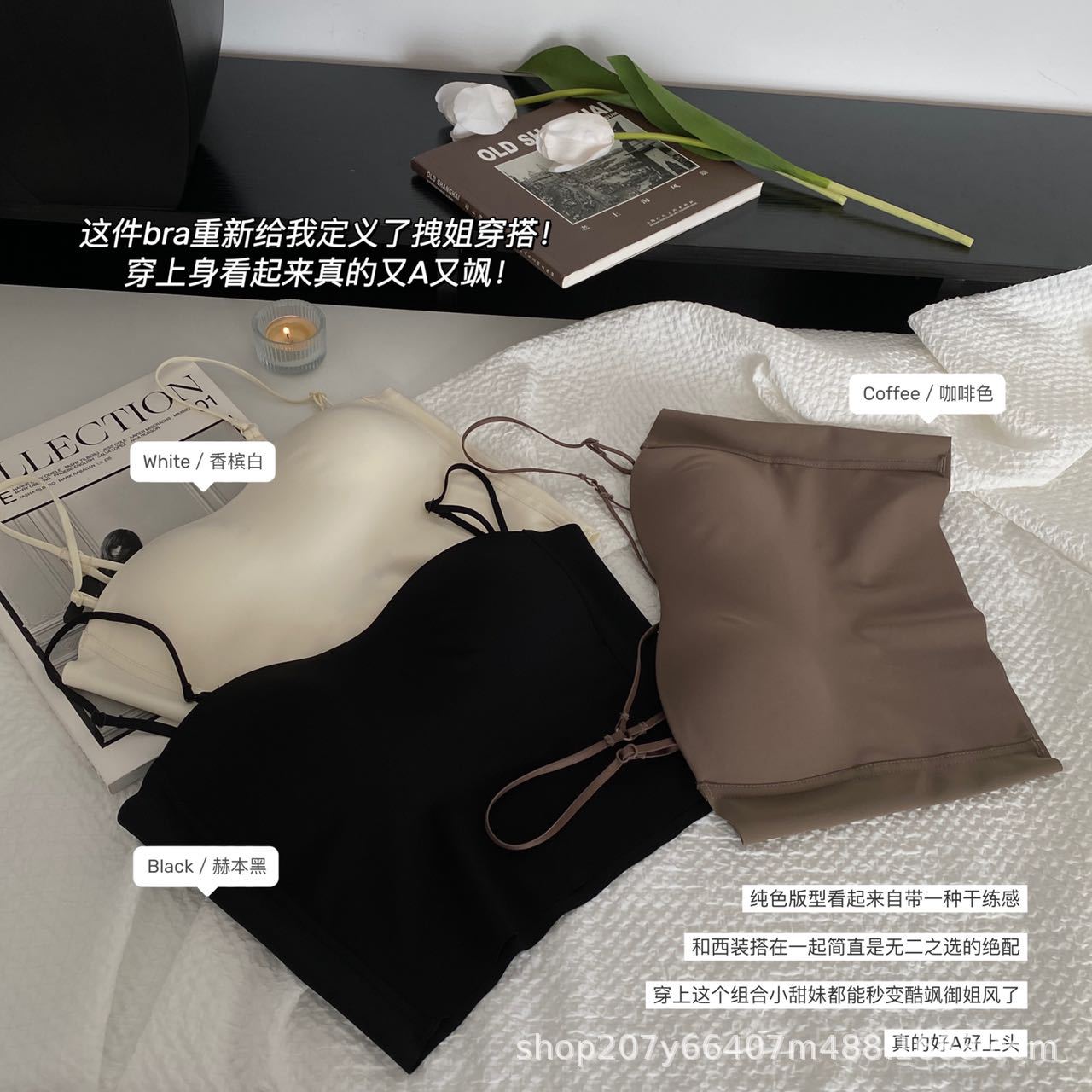 여름용 U자형 등이 예쁜 여성 속옷, 얇은 소형 가슴 모아주는 노라인 노출방지 끈나시 이너웨어 브라탑