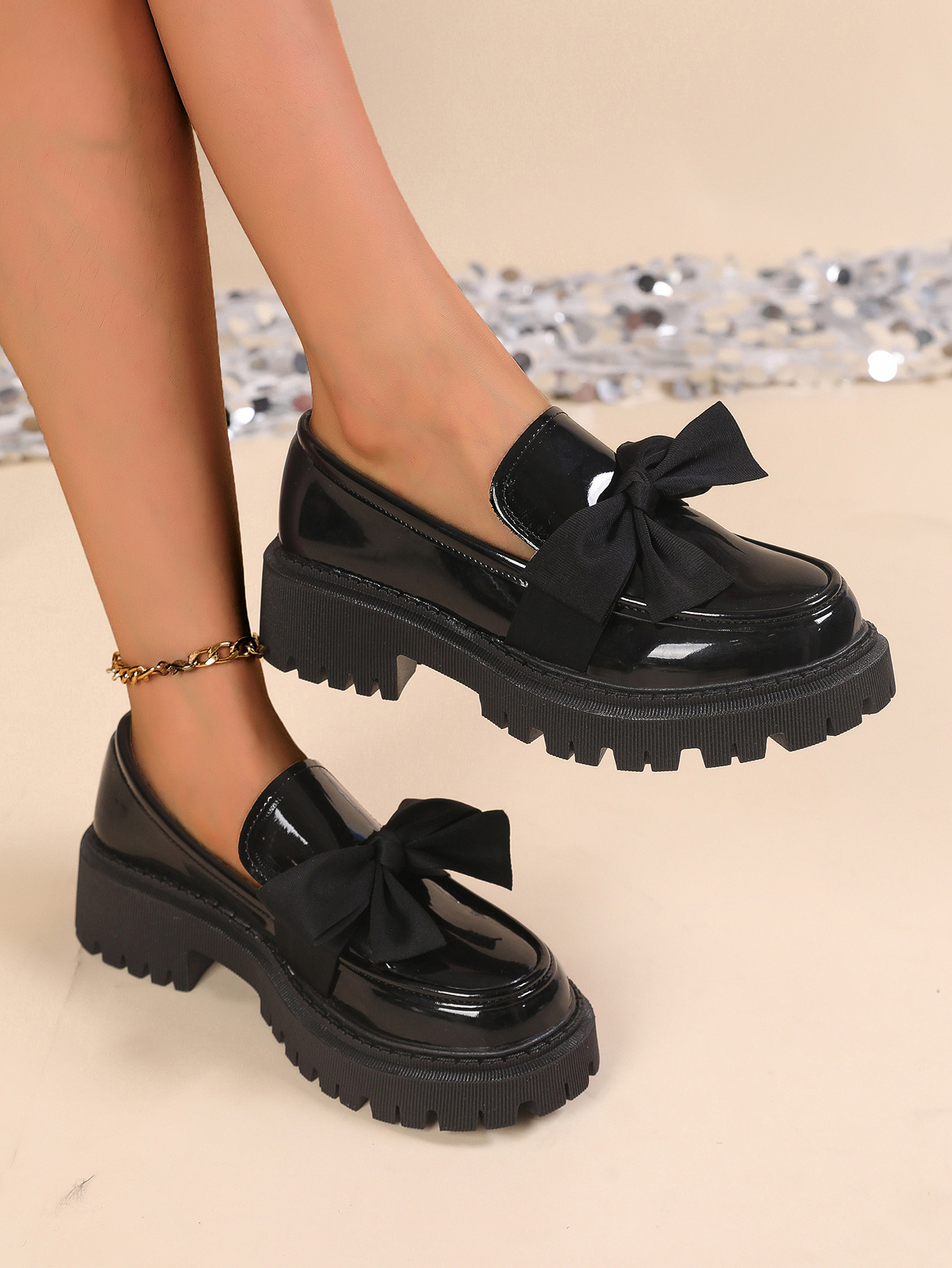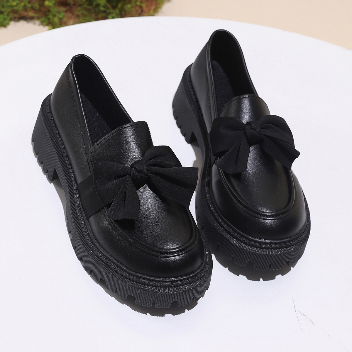 2025 봄과 가을 새로운 크로스 보더 대형 로퍼 여성 나비 매듭 두꺼운 밑창 작은 가죽 신발 복고풍 싱글 신발 대외 무역 도매